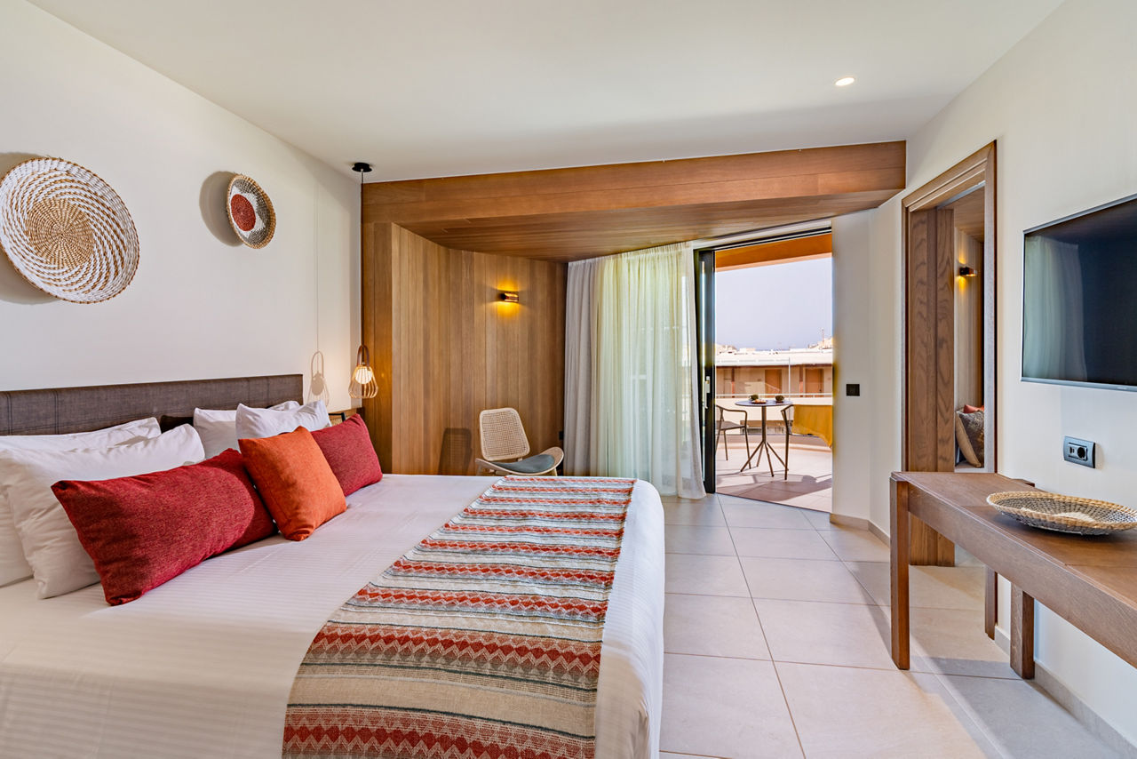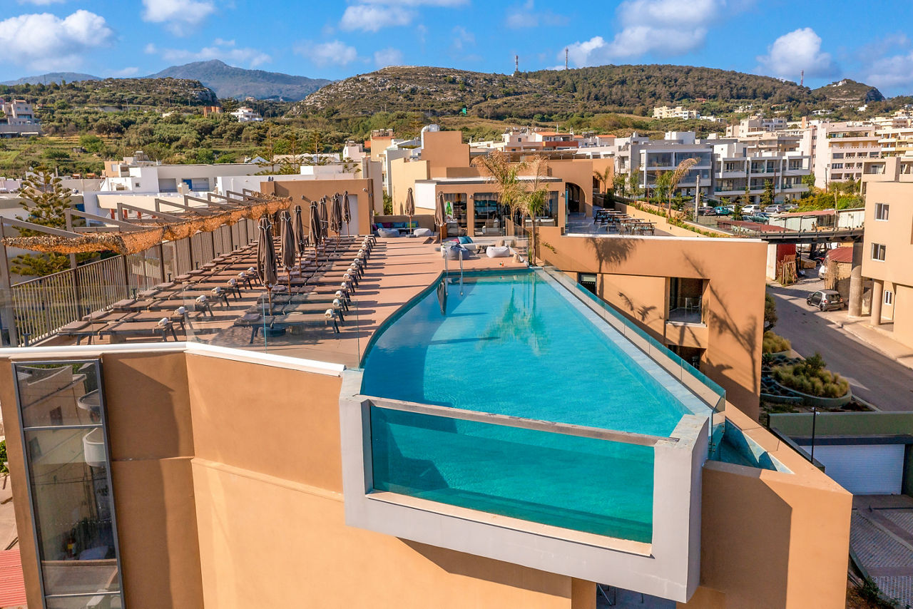 Situated a short stroll of Rethymnon, you've got the perfect mixture of city life and beach days. Enter a stylish oasis with contemporary furnishings, and soak up the sun at the rooftop pool and terrace. Meals served with a stunning view, and easy access to the sister property Minos Hotel. Fancy something special? Visit the hotels very own wine cellar, with tastings and even private dinners available to book!Junior suites sleep up to 2 adults and have a bathroom containing a shower, air conditioning, hairdryer, bathrobe and slippers, safety deposit box, flat screen television, fridge, kettle and balcony or terrace. Room upgrade options and Sole Use rooms are also available.