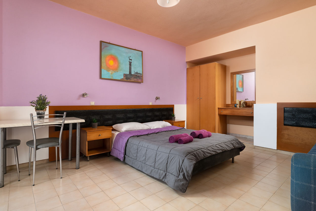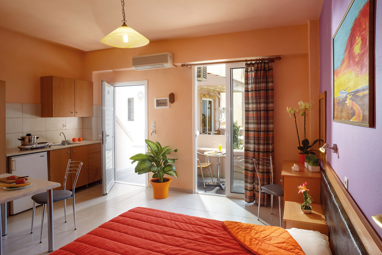 With just 40 rooms, the warm and welcoming Marietta Aparthotel is an ideal base to explore Rhodes from. With it's location close to Pastida, a peaceful village for those wanting a relaxing retreat and for those who want to up the pace, Rhodes Town and Faliraki are within reach with lively nightlife on offer. Back in Pastida, for those relaxing moments why not take advantage of the inviting pool area or the restaurant and bar which offer a range of cuisine including traditional Greek specialities. With a variety of board options, the family-run Marietta Apartments are the perfect choice when visiting beautiful Rhodes.Studios sleep up to 3 adults and have bathroom containing a shower, air conditioning*, fridge, safety deposit box* and balcony. Room upgrade options are also available.