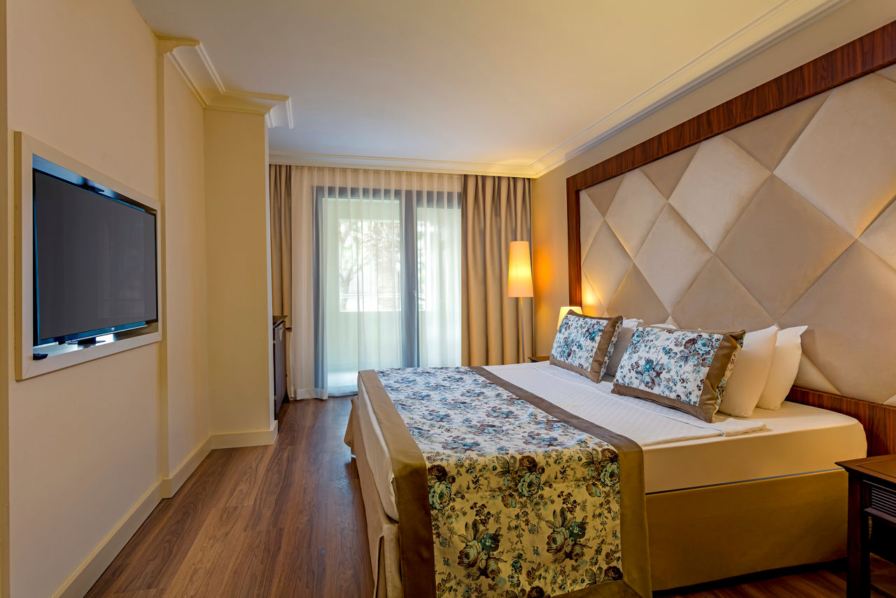 Seven Seas Hotel Life is in a beautiful and relaxing location, situated on its own private beach, surrounded by rich woodland and with a stunning mountain backdrop. The hotel offers a wide range of facilities, including a brand new heated indoor pool, Irish bar and spa for Summer 2026! Adults will be pleased with the extensive outdoor pool area boasting plenty of space for relaxing, while children will love the fantastic Kids? World which has its own pool with colourful waterslides and fun play areas. There?s also a great selection of bars and restaurants here, making this the perfect choice for your All Inclusive Plus holiday.Standard Double and Twin rooms in the Main Building sleep up to 3 adults or 2 adults and 1 child and have bathroom containing a shower, air conditioning (between 10 Apr and 31 Oct), hairdryer, flat screen television, kettle and balcony or terrace. Rooms with Sea views, Family rooms, Junior suites and rooms for Sole Use are also available.