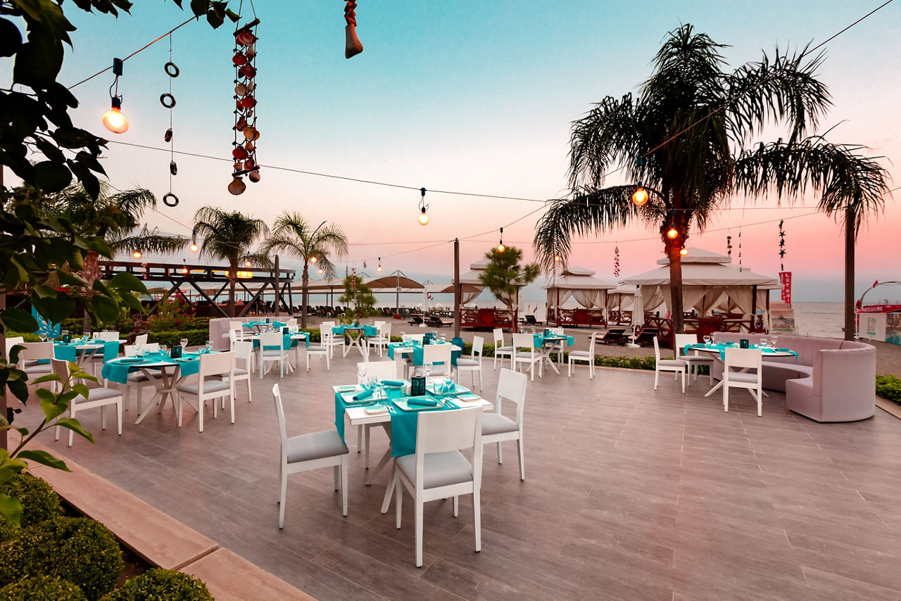 Main buffet restaurant. 2 à la carte restaurants (reservation required, one visit to one restaurant per stay). 6 bars including pool bar, beach bar, snack bar and disco.Entertainment
