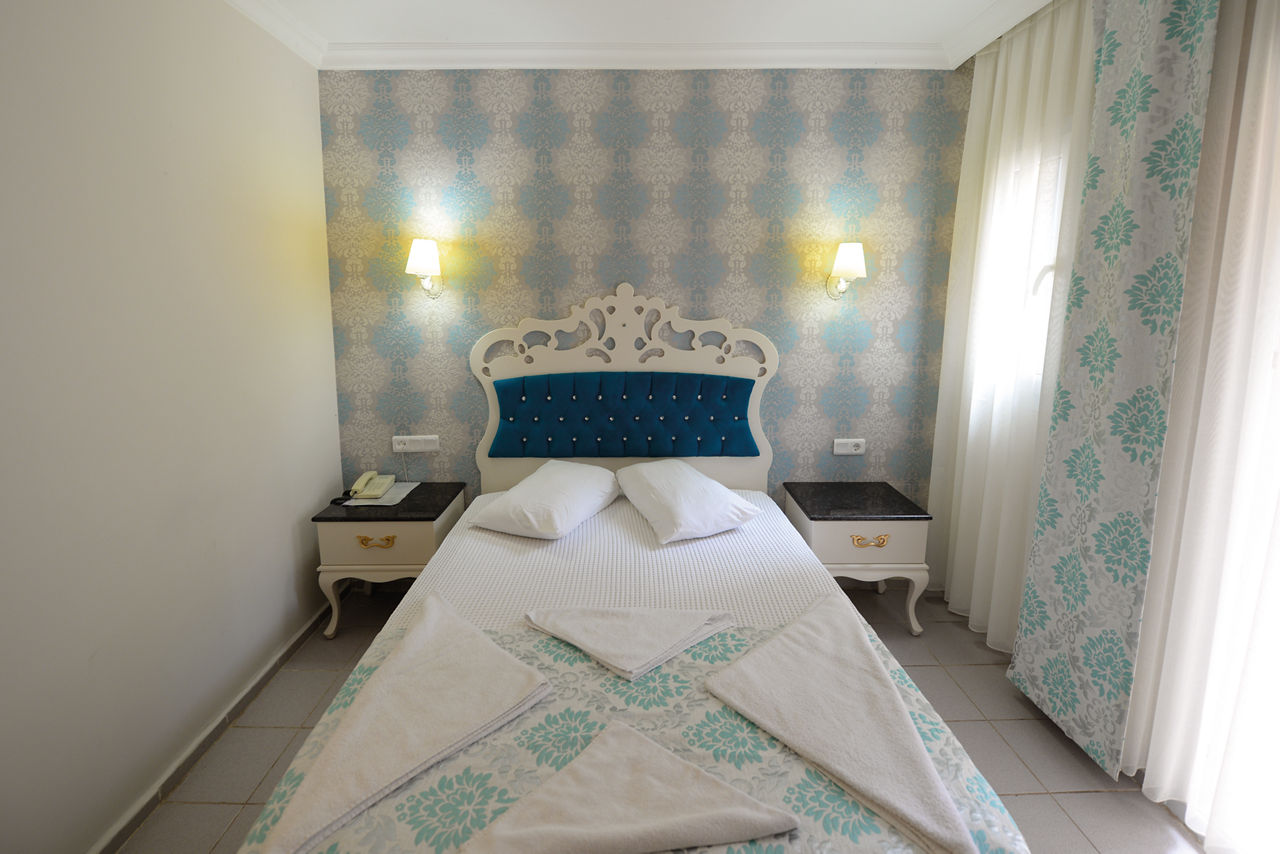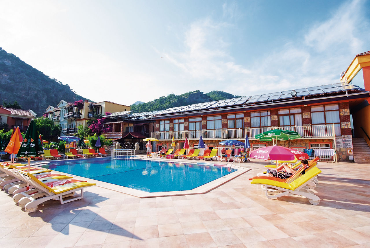 The Turk Hotel is a friendly, family-run hotel set in a fantastic location in Olu Deniz resort centre, close to the beautiful Blue Flag beach and within easy reach of the famous Blue Lagoon. The hotel offers a lovely outdoor pool surrounded by picturesque gardens perfect for lazy days in the sun. Rooms are simple and spacious, overlooking either the hotel?s bougainvillea-draped gardens or the pool. A great choice for those looking for a great value base and a relaxing break.Standard Double or Twin rooms sleep 2 adults and have bathroom containing a shower, air conditioning*, hairdryer, flat screen television, safety deposit box* and balcony or terrace. Standard Double and Twin rooms sleeping up to 3 adults and Standard Double or Twin rooms for Sole Use are also available.