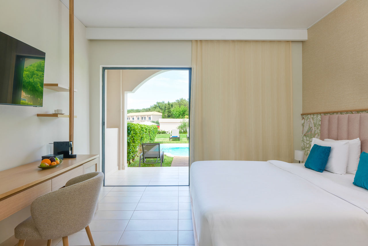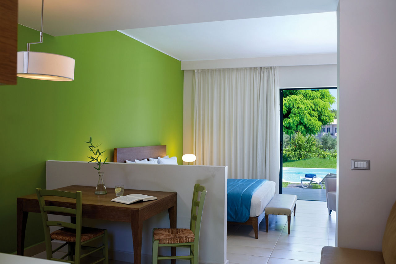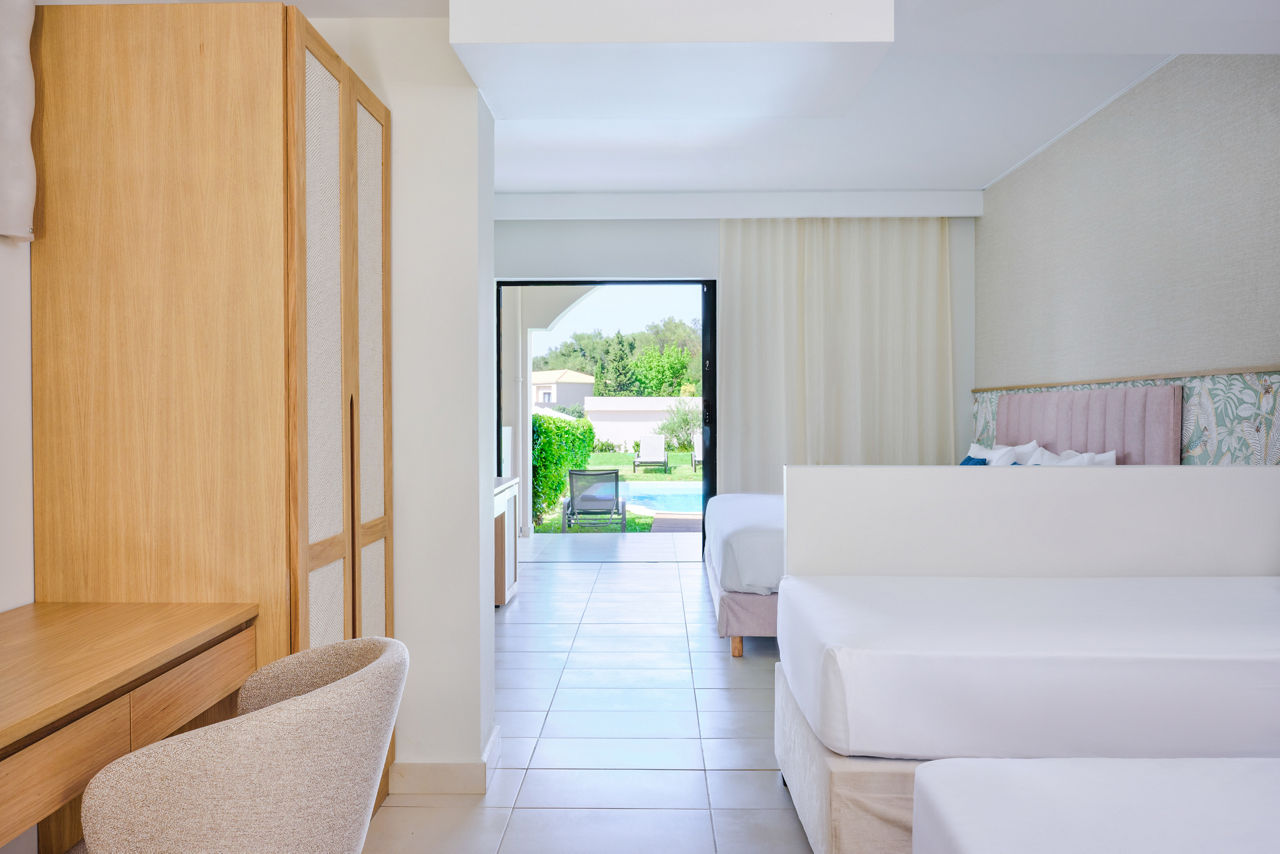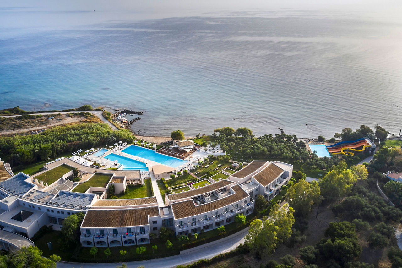 Sitting on the sun-drenched shores of the Ionian Sea, on Zante?s north coast, the Atlantica Eleon Grand Resort is a haven for all the family. From the moment you step into the lush grounds, it's clear that it?s been designed with families in mind. The dedicated kids' club offers a world of entertainment, keeping the little ones engaged with fun-filled activities and classes, while parents can unwind by the inviting outdoor pools. Kids can whizz down the colourful waterslides, then when it?s time to refuel, head to the three on-site restaurants that cater to all tastes. Three bars are on hand too for those refreshing drinks.