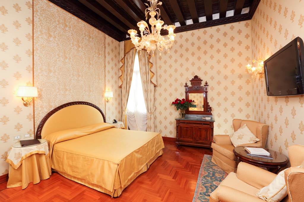 Set in a 15th century palace, the 4-star Hotel Palazzo Stern overlooks the Grand Canal and has a prime location close to the top tourist hotspots. Rooms stay true to the traditional Venetian style and are well equipped for offering that relaxing atmosphere after a day of discovering. Friendly staff and an enviable location make this an ideal hotel for taking in the sights.Standard Double or Twin rooms sleep up to 2 adults and have bathroom with shower, Wi-Fi, satellite TV, safe*, hairdryer, tea and coffee making facilities.