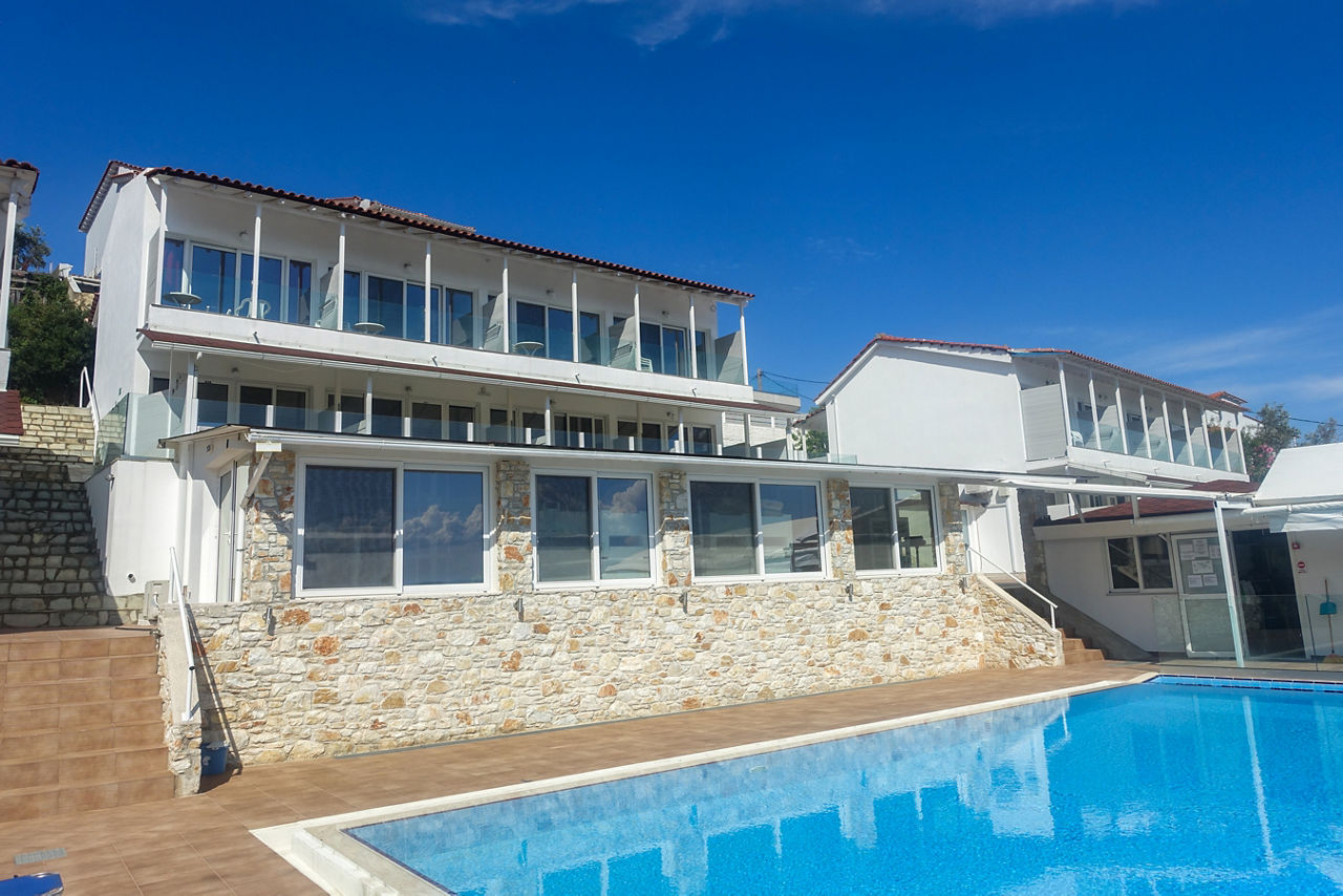 350m from the beach. 700m from Megali Ammos resort centre. 1 km from Skiathos Town.Hotel Rene