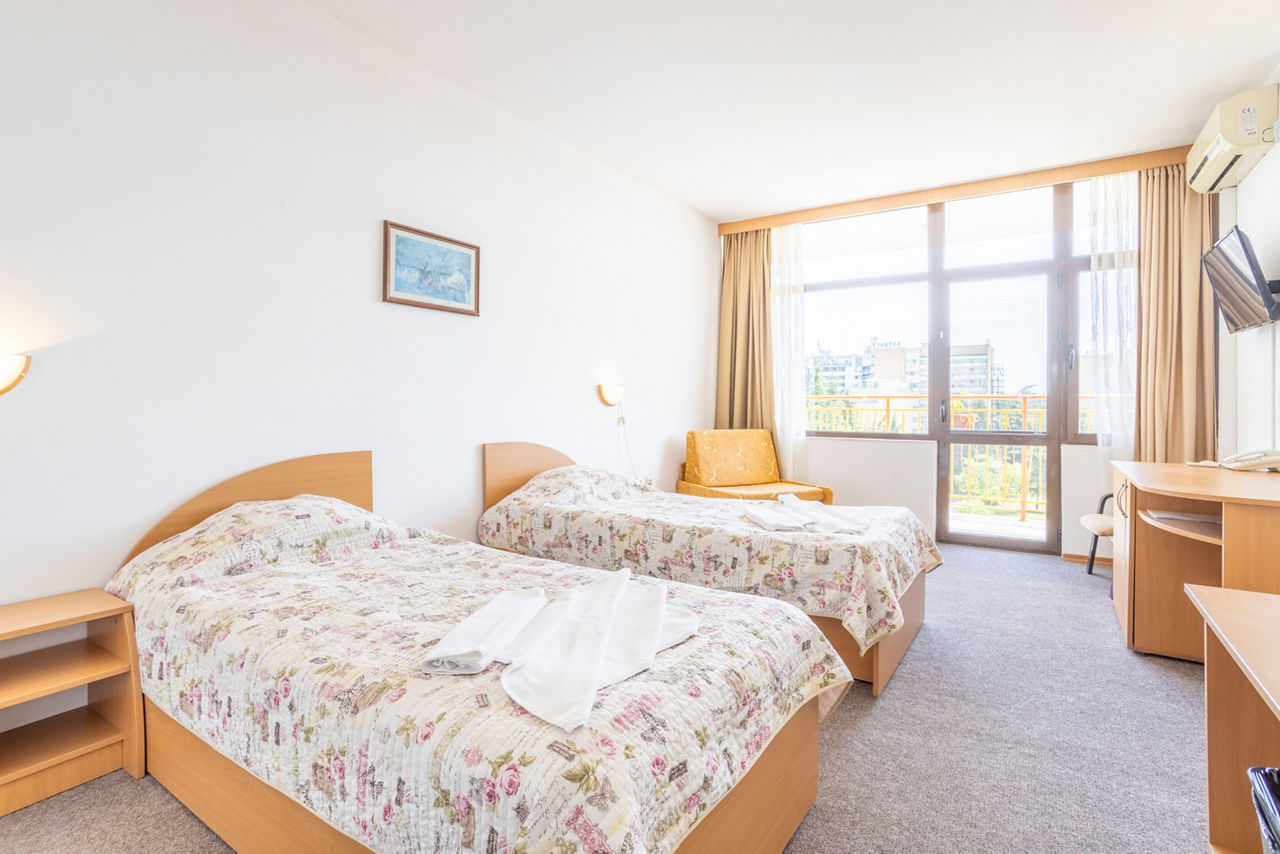 Located a short stroll to the beach and in a quieter side of the lively Sunny Beach, Trakia Garden is perfect for couples, friends, and families thanks to its welcoming atmosphere. There?s a large pool area with children?s slides, a playground and games room, so the little ones will be entertained. If exploring is your thing, you can grab a taxi and be in the UNESCO-listed old town of Nessebar within minutes, where you?ll find charming restaurants and shops as well as historical sites and monuments to visit.Double or Twin rooms sleep up to 3 adults and have bathroom containing a shower, air conditioning, fridge and balcony or terrace. Room upgrade options and Sole Use rooms are also available.