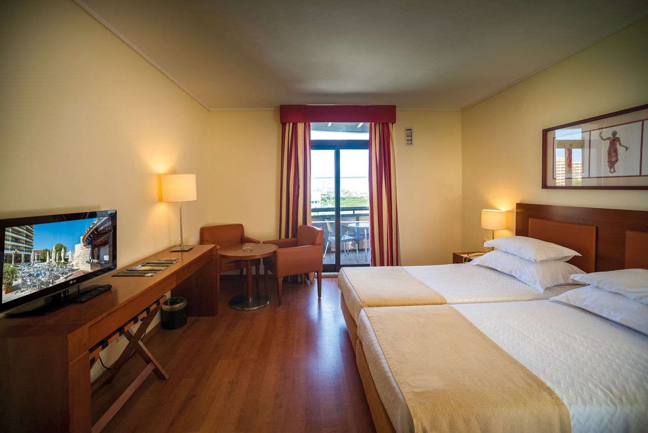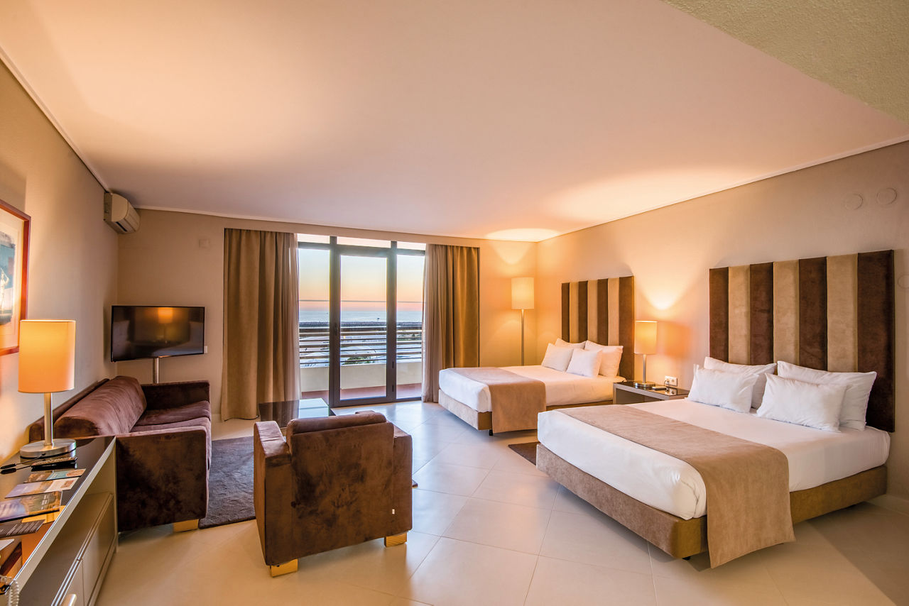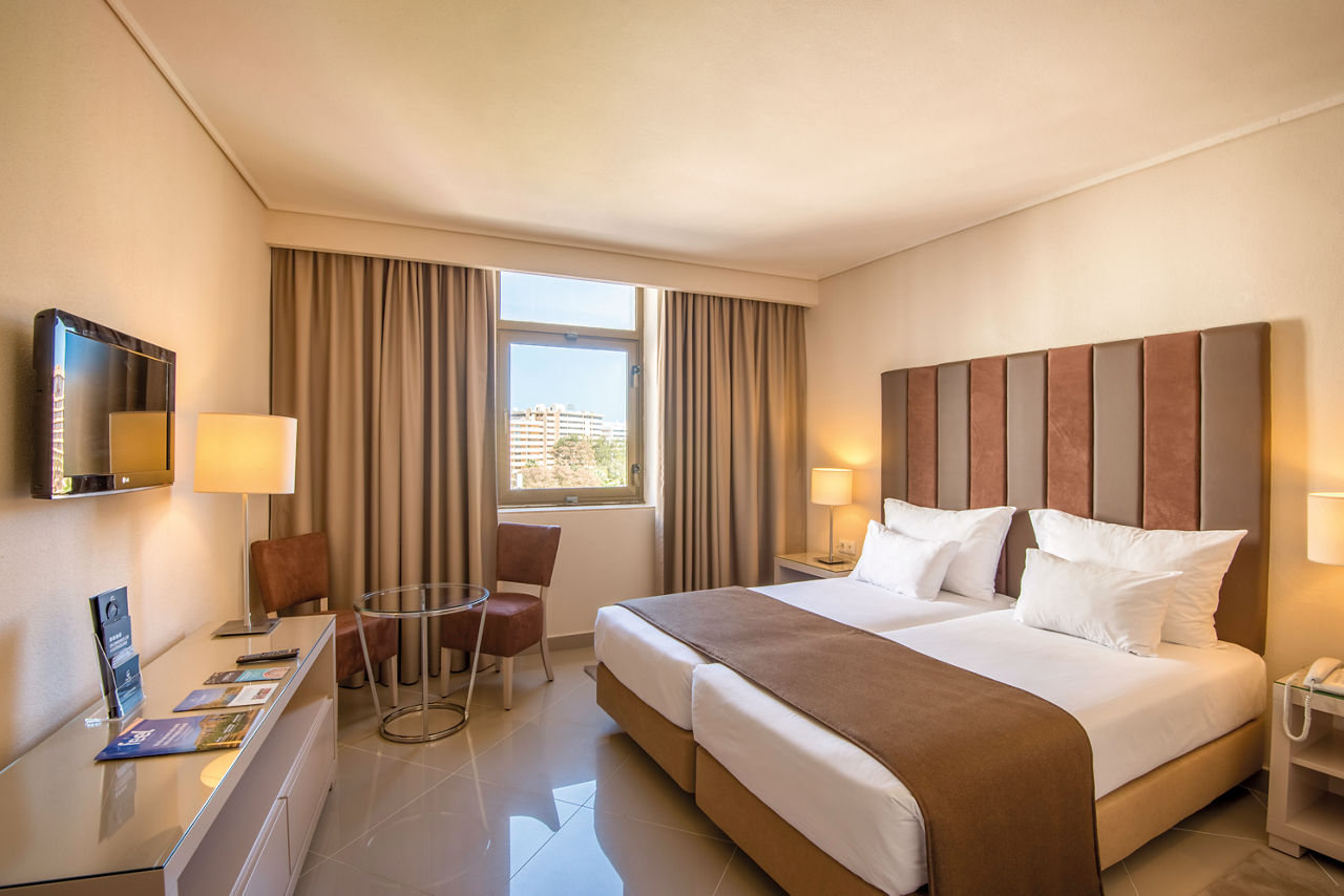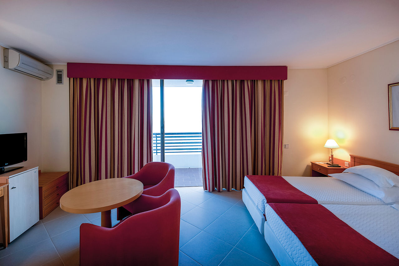 In one of the Algarve's most sought after resorts, the Vila Gale Ampalius has a prime location set just a stone's throw from a glorious sandy beach for daytime activities whilst being a short to walk to the famous Vilamoura Marina for fabulous restaurants and bars at night. You can also feel fabulous by treating yourself at the hotel's health club where the spa facilities will help you unwind. Sea View rooms are perfect for those looking to take a fantastic picture with the Atlantic Ocean glistening in the sun. Rooms are modern, bright and spacious, and the friendly service will make you feel comfortable during your stay. This is the perfect base for a getaway to the sunny Algarve!Twin rooms without Balcony sleep 2 adults and have a full bathroom, hairdryer, air conditioning, satellite TV and safety deposit box. Twin rooms with Sea View with balcony, Superior Twin rooms with balcony, Twin rooms without Balcony for Sole Use and Twin rooms with Sea View for Sole Use are also available.