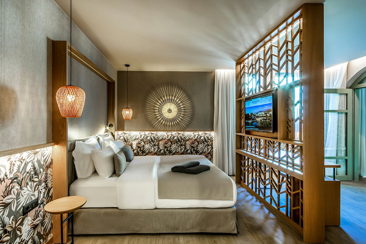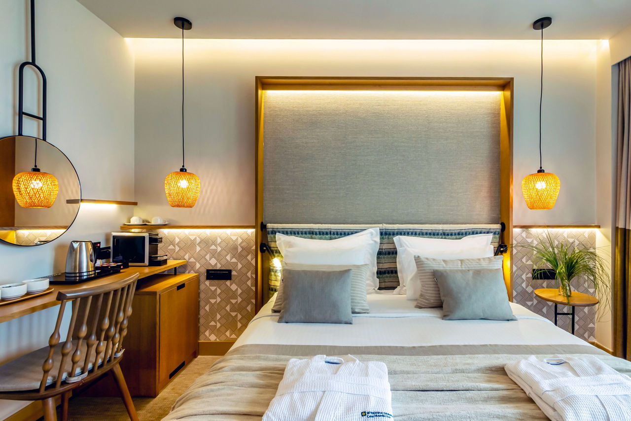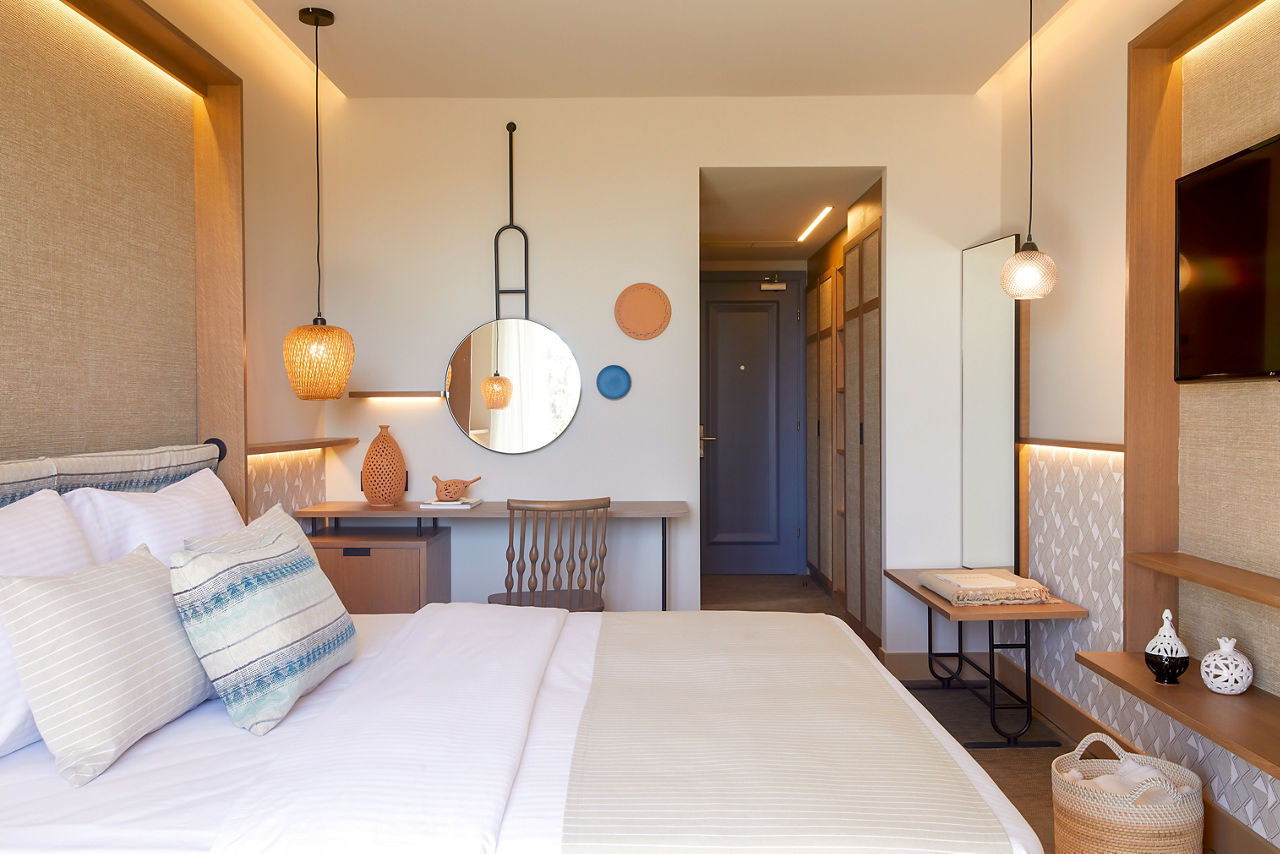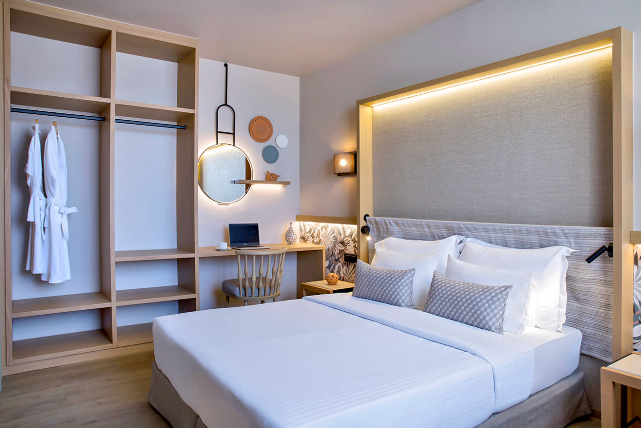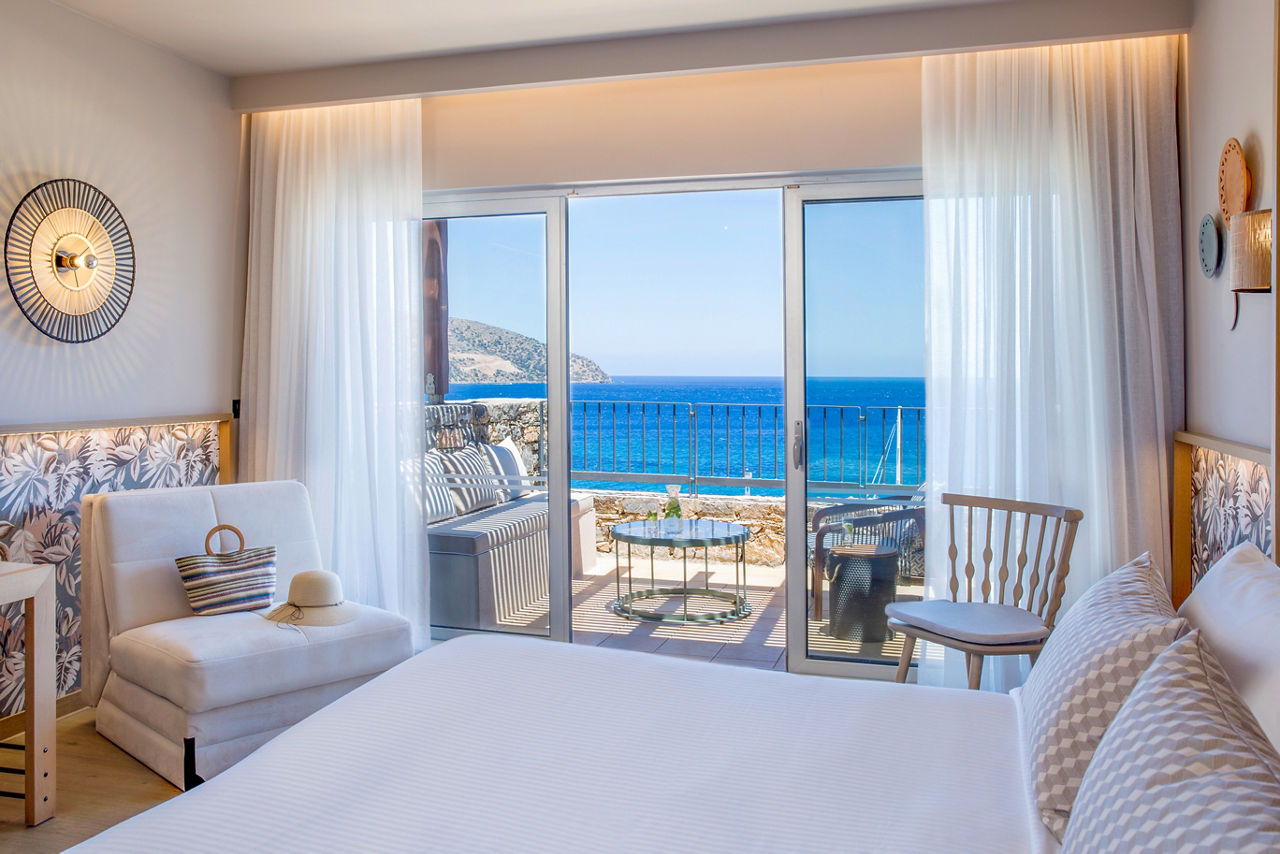 Proudly situated on the beachfront on the outskirts of Aghios Nikolaos, the impressive Zeus Eleva Mirabello Bay boasts a secluded beach area, a fantastic range of facilities and stunning sea views. This hotel oozes charm and style with fresh interiors and modern surroundings. Choose between garden views, sea views or if you're feeling more extravagant, check out the rooms with private pools. Let's not forget about the little ones, with a children's pool, a children's club, a playground and waterpark, there really is something for everyone.Twin rooms with Garden View sleep up to 3 adults and have bathroom containing a bath or shower, air conditioning, hairdryer, flat screen television, tea and coffee making facilities and balcony or terrace. Room upgrade options and Sole Use rooms are also available.