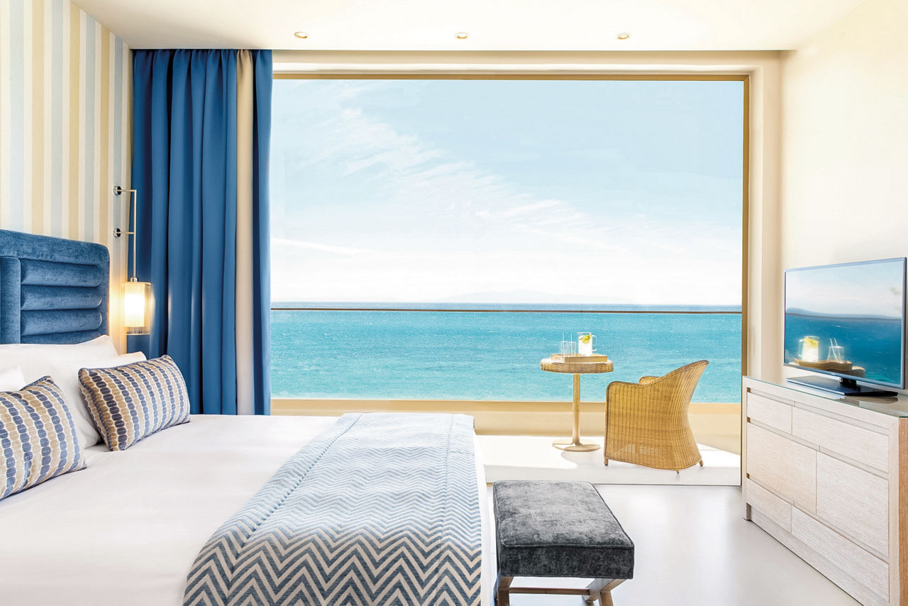 Moments from the beach, Ikos Oceania makes the most of its coastal setting. For starters, there?s a fabulous infinity pool that lends itself to soaking up not just the rays, but the views too. The grand total of six outdoor pools go nicely with the rejuvenating spa treatments and range of sports activities. The fantastic children?s facilities will keep the little ones entertained throughout the day, and don?t worry about the big kids getting bored- the teen club has them covered. Feeling energetic? Hit the gym before uncovering all the spoils of nearby Nea Moudania. As unconditional luxury is the name of the game here, your taste buds will be tantalised by the six international restaurants. Five bars are on hand when you fancy a mixologist?s must-try or one of 300 wines.Superior Double room with Sea View sleep up to 2 adults and 1 child and have bathroom containing a bath with shower attachment, air conditioning, hairdryer, bathrobe and slippers, flat screen television, DVD player, tea and coffee making facilities and balcony or terrace. Room upgrade options are also available.
