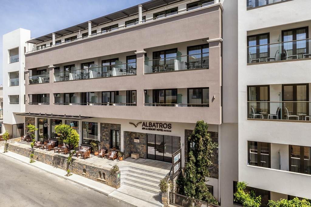 The family-run Albatros Spa & Resort Hotel is located in an enviable position close to the beach and the resort centre of Hersonissos. The attentive service and attention to detail at this unique hotel will ensure you are well looked after. Boasting a tempting à la carte restaurant as well as an indulgent spa, this hotel is ideal for those looking for high standard accommodation with a laid-back atmosphere.Traditional in design, Standard double rooms (in original main building) sleep 2 adults and have separate bathroom with bath or shower, fully furnished balcony or terrace, mini fridge, Individually controlled air-conditioning, wireless Internet access, Satellite LCD TV-set and hairdryer. Kettle available on deposit. Superior double rooms (in newer block next to main hotel) are modern in design and more spacious and sleep up to 2 adults and 2 children. Single rooms are also available.