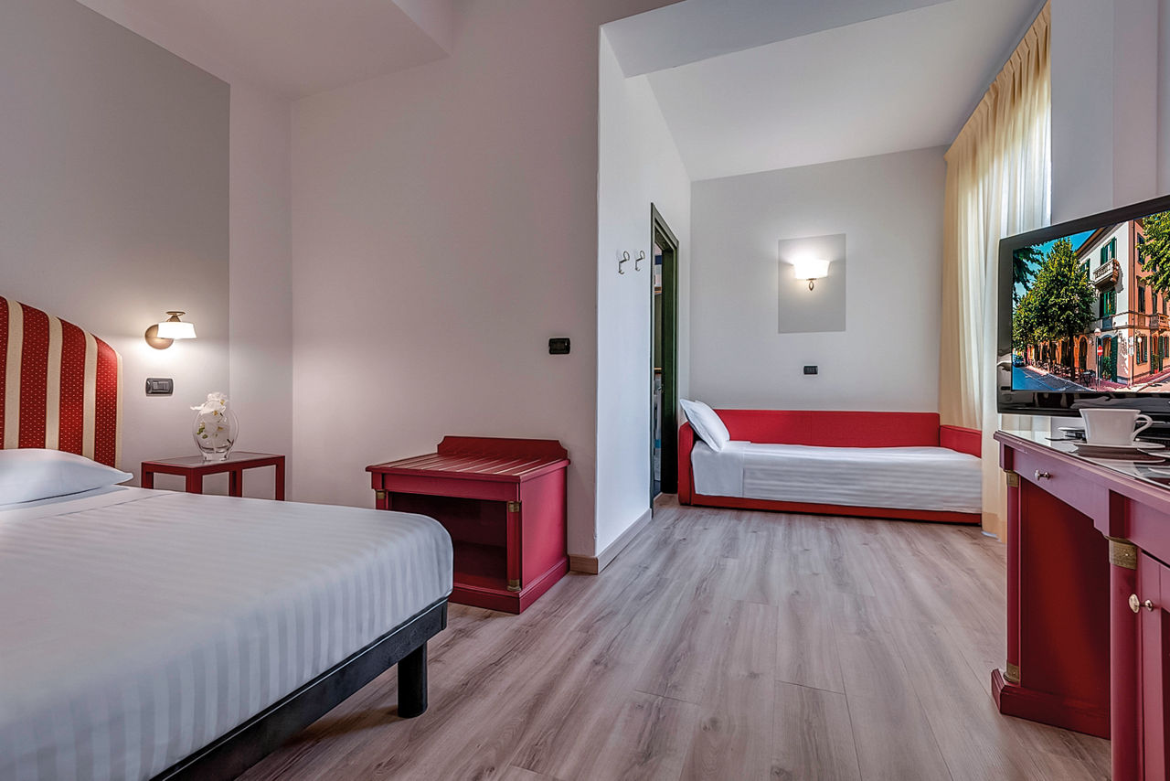 Lovingly cared for by the Biondi family for generations with a passion for first class hospitality, the Hotel Da Vinci offers guests a memorable stay. With an atmosphere of elegance and a combination of a classic style along with the new, this hotel is an ideal choice for discovering the hidden corners of Tuscany. The panorama of the Tuscan hills of Montecatini Alto can be viewed from the nearby cool waters of the rooftop swimming pool or from the sun loungers of the terrace, shared with its sister Hotel Boston. Relax in the tree lined garden before sampling the Tuscan cuisine in the restaurant or just enjoying the fine wine from the local vineyards. Rooms are cosy and bright and perfect for a good nights sleep. Located in such a beautiful area makes this the perfect choice for those wanting to explore the local countryside.Double or Twin rooms sleep 2 adults and have bathroom containing a shower, air conditioning, hairdryer, flat screen television and mini-bar. Triple rooms are also available.