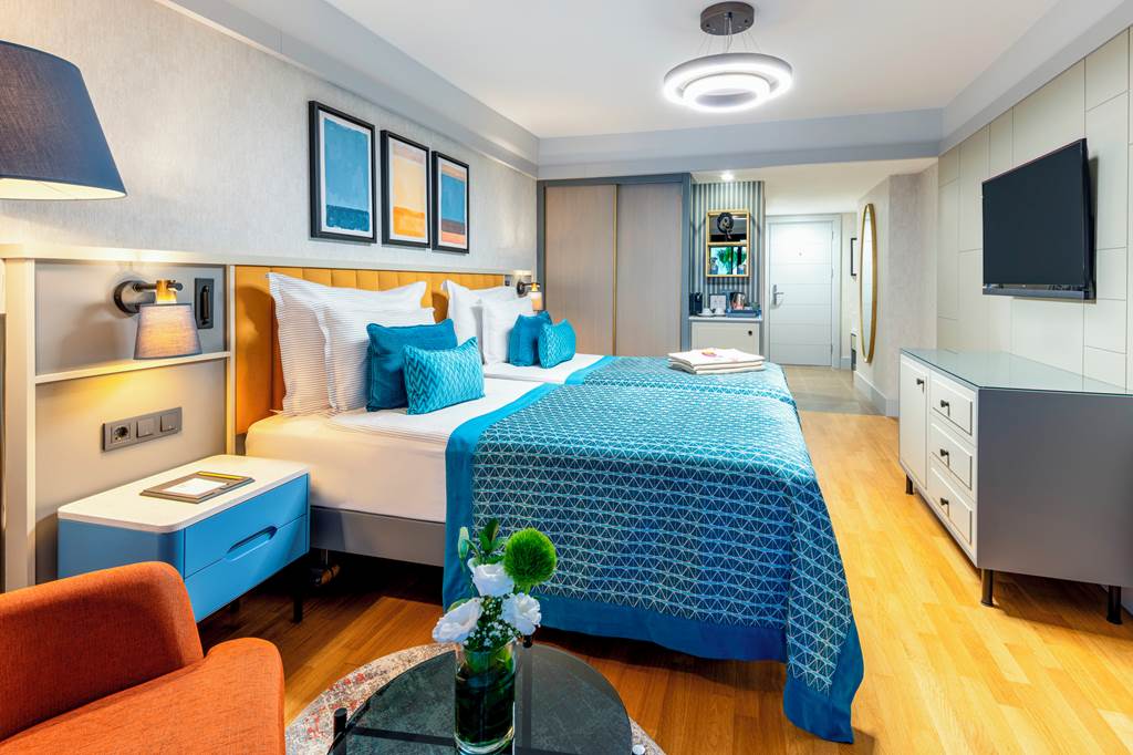 At the Arum Barut Collection, you?ll find yourself in five stars of getaway greatness! Set right on the beachfront, this modern hotel is designed with relaxation in mind. There?s a spacious tropical-style pool area with plenty of sun loungers and parasols for unwinding in the sun, while the spa offers blissful treatments. Meals are easy too with the excellent All Inclusive Plus package. Say hello to six superb à la carte and buffet restaurants! Couples will enjoy the swish suites, variety of atmospheric bars and Adults Zone on the beach. Families are also catered for. Waterslides, children?s club, playground and regular evening entertainment? Tick, tick, tick and tick!Standard Double or Twin rooms sleep up to 3 adults and have bathroom containing a shower, air conditioning, hairdryer, bathrobe and slippers, flat screen television, coffee making facilities, safety deposit box, free Wi-Fi and balcony. Standard Double or Twin rooms with Side Sea View, Junior suites, Family rooms with Side Sea View sleeping up to 3 adults and 1 child, Deluxe Family suites sleeping up to 4 adults, Big Residence rooms sleeping up to 5 adults and Sole Use rooms are also available.