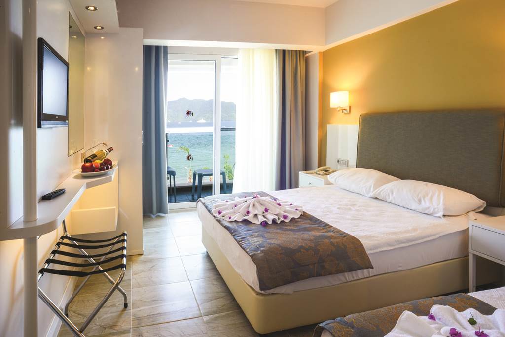 The popular Maris Beach Hotel is situated on a private sandy beach, providing picturesque views of Marmaris Bay and its harbour. Feel relaxed in your spacious and modern room or as you lounge on the beach soaking up the sun. The location also means you will dine on the beachfront and enjoy the sounds of the sea along with breakfast for the perfect start to the day. Journey into Marmaris resort centre to make the most of the shopping opportunities and also spend your evenings here with a range of bars and entertainment that provide a fun-filled atmosphere. For a holiday where stepping out onto the beach is part of your daily routine, the Maris Beach Hotel is the perfect choice.Standard Double and Twin rooms sleep up to 3 adults and have bathroom containing a shower, air conditioning*, hairdryer, television and a balcony or terrace. Standard Double and Twin rooms with Sea View and Standard Double and Twin rooms for Sole Use are also available.