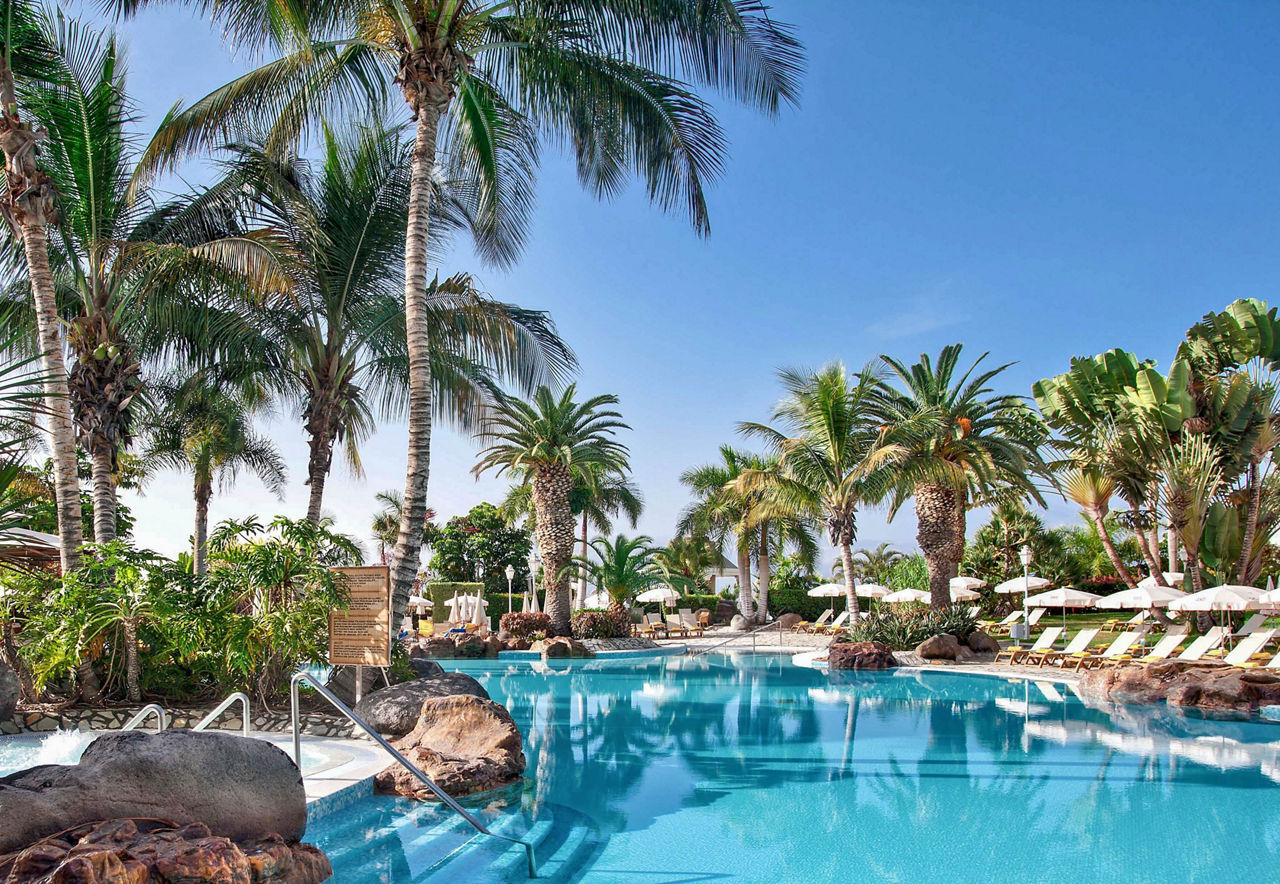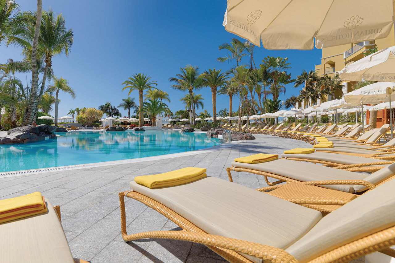 Step into palm-lined luxury, just moments from the sandy beach. The exotic gardens that wrap around Adrian Hoteles Jardines De Nivaria are just the beginning of the scenic serenity, as this truly is an oasis of peace. Spend your days unwinding by one of the three outdoor pools, and you?ll appreciate the excellent service throughout your stay too. Self-confessed foodies will be delighted by the trio of international and Spanish restaurants, especially Michelin Guide-recommended La C?pula. Take some time for yourself at the relaxing spa or simply take a stroll along the nearby blissful beachfront.Standard Double rooms with garden view sleep 2 adults and have satellite plasma TV, fully equipped bathrooms, individual air conditioning and 24-hour room service. Standard Double rooms with Pool view, Standard Double rooms with Sea View, Superior rooms, Junior suites, Superior suite with Whirlpool and Standard Double rooms for Sole Use are also available.