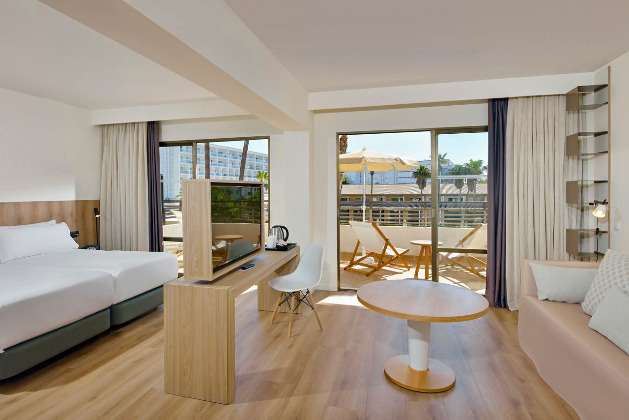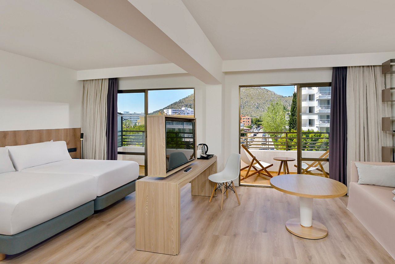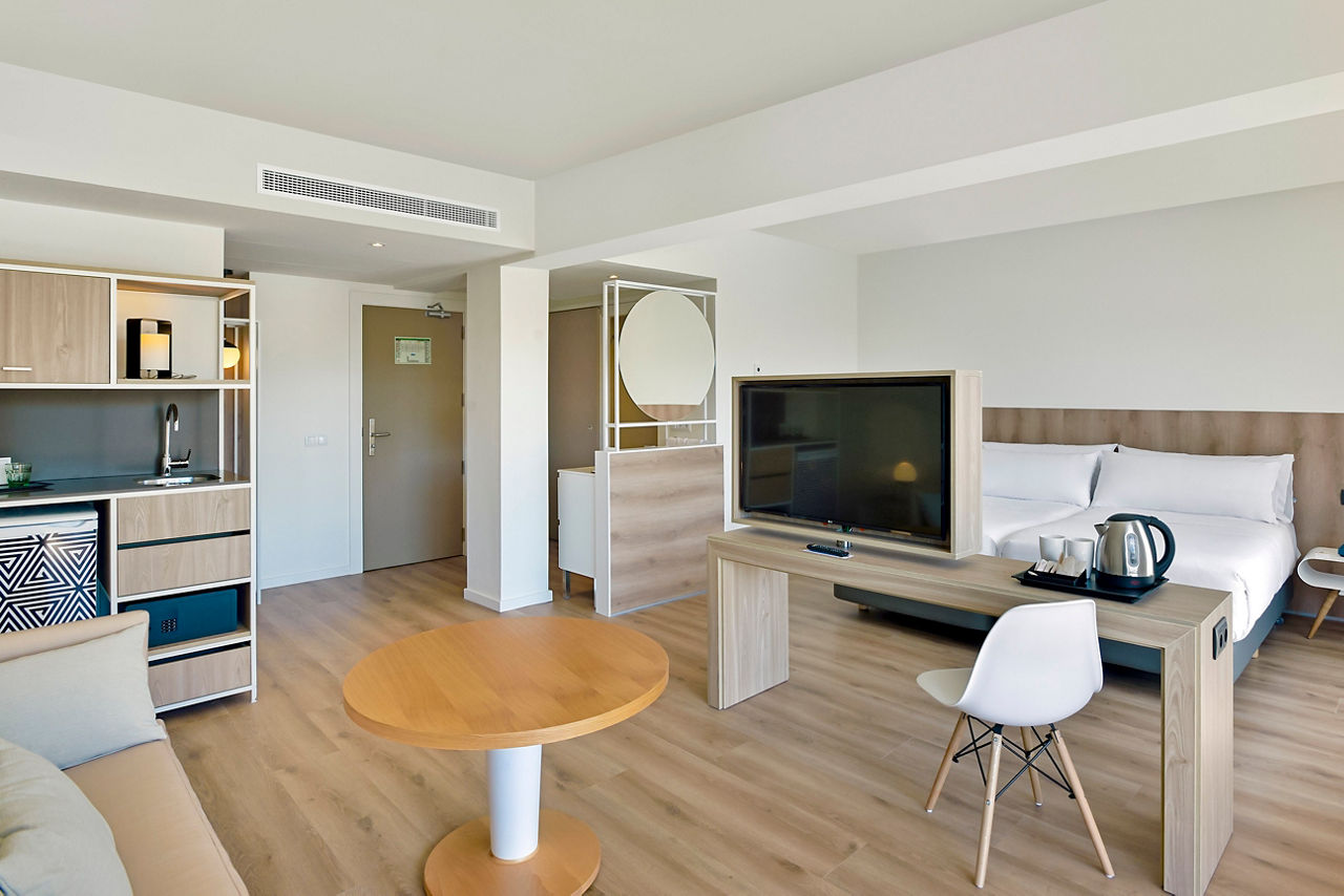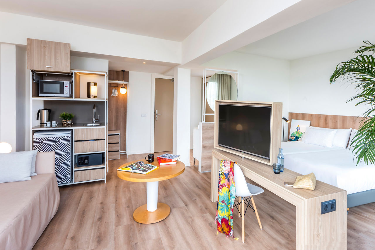 Welcome to Innside by Meli? Alcudia, a modern oasis nestled on the northeast coast of Majorca, perfect for travellers of all ages. Just steps from Alcudia Beach, this stylish hotel offers an ideal blend of leisure and lifestyle, with spacious rooms, an inviting pool area, and a vibrant atmosphere. With its convenient location near the Port of Alcudia, lively shopping areas, and cultural attractions, Innside by Meli? Alcudia promises an unforgettable stay that captures the essence of Majorca for families and couples alike.Studios sleep up to 2 adults and 1 child and have bathroom containing a bath with shower attachment, air conditioning, hairdryer, television, fridge, microwave, double cooking rings, kettle, toaster and balcony or terrace. Room upgrade options are also available.