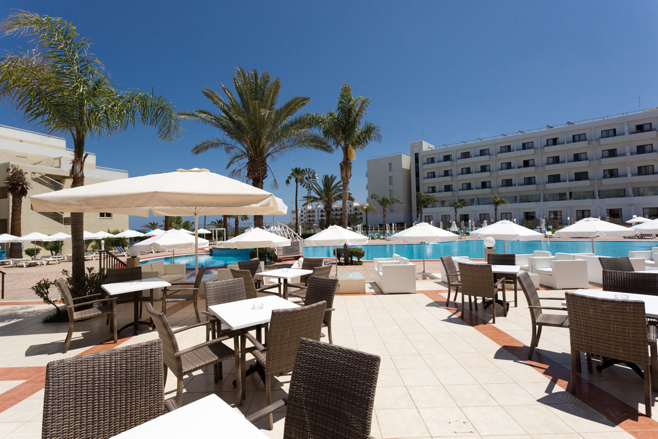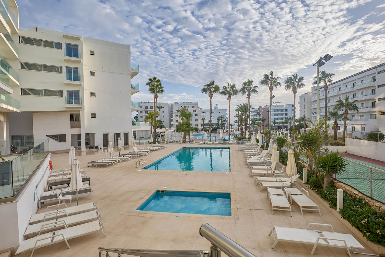 2 outdoor pools including children's pool. Sunbathing area with sunbeds and parasols.Tsokkos Protaras Hotel