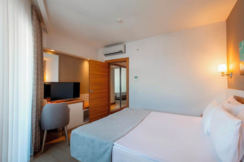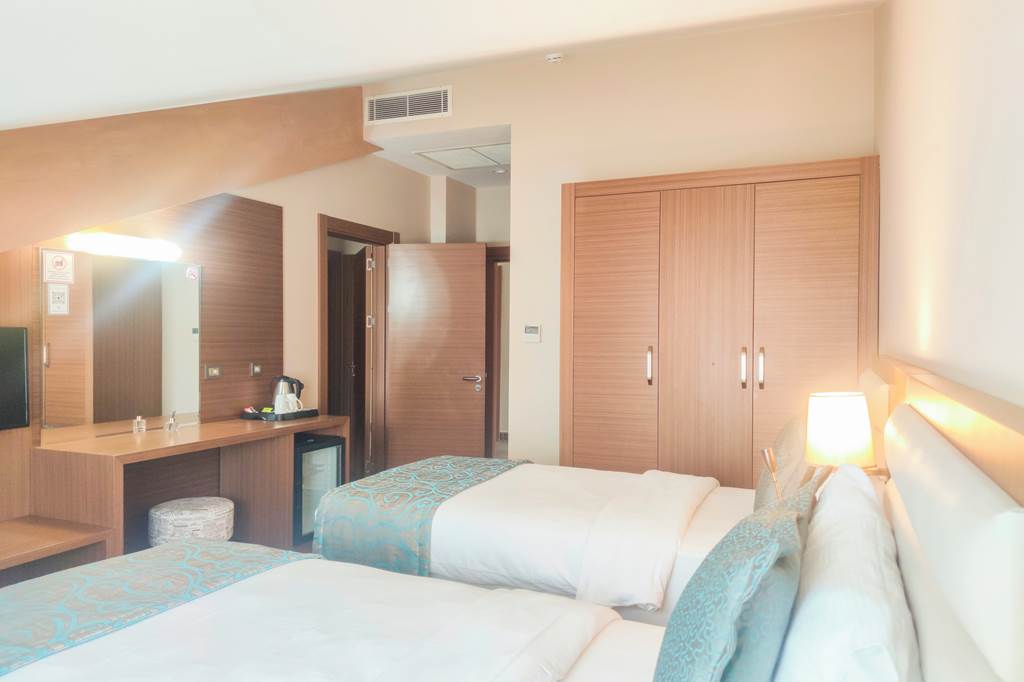 Grand Park Lara is a fabulously thrifty three-star primed for families, couples and groups of friends with something for everyone. We?re talking a by-the-beach location, four outdoor pools, four whizzing waterslides and all day All Inclusive. How?s that for handy? Snaffle scrumptious snacks, sink into soothing spa treatments, or even hit the gym if you fancy! Daily entertainment? You can bet that?s on the cards too. Plus there's a children's club the little ones will love.Standard Eco rooms with Garden or Pool view sleep up to 2 adults and 1 child and have bathroom containing a shower, hairdryer, air conditioning, television and tea and coffee making facilities. Room upgrade options are also available.