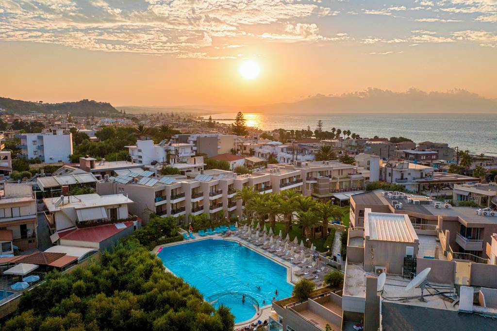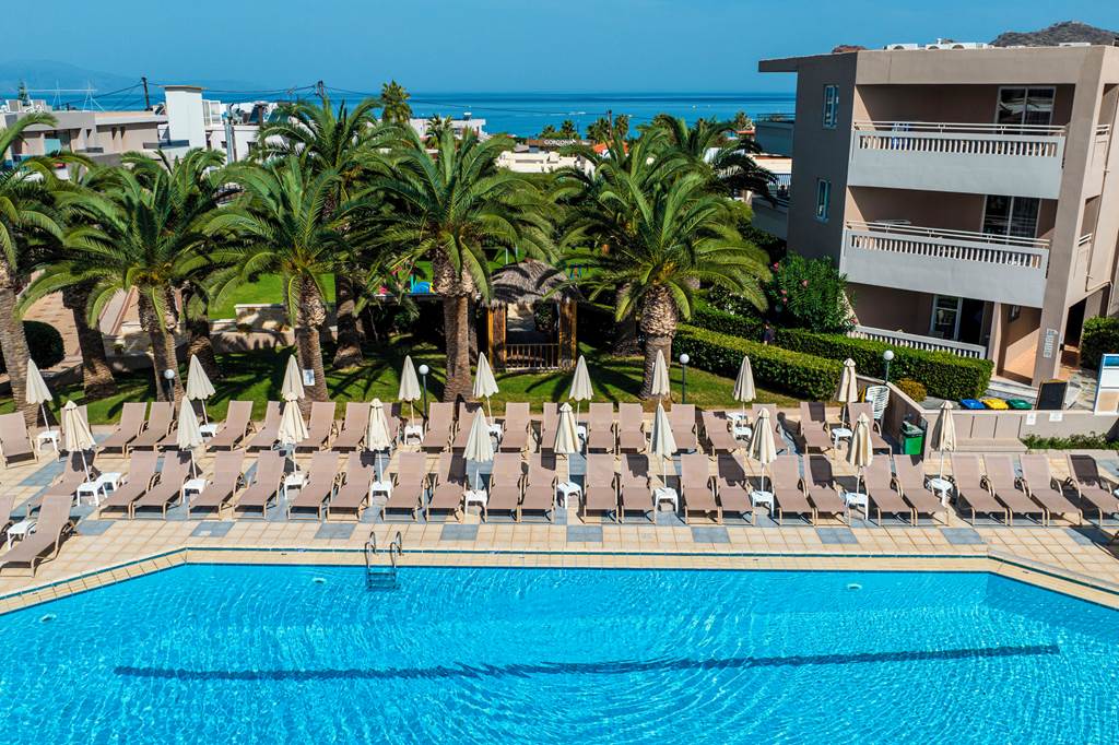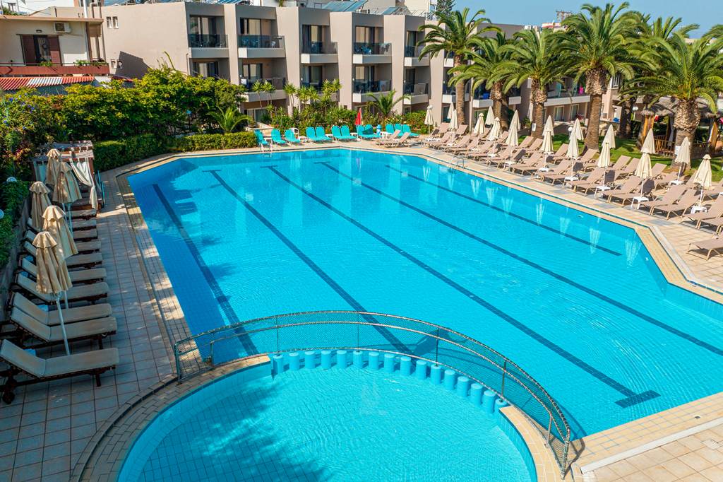 The Atrion Hotel is in the centre of Aghia Marina, with a string of shops, restaurants and bars just around the corner. The sandy beach is also a few minutes? walk away. The outdoor pool is an excellent size and is flanked by sunbeds, parasols and swaying palm trees. There?s also a pool bar serving snacks and a children?s playground to keep the little ones occupied.Book today for only £60 deposit per person!