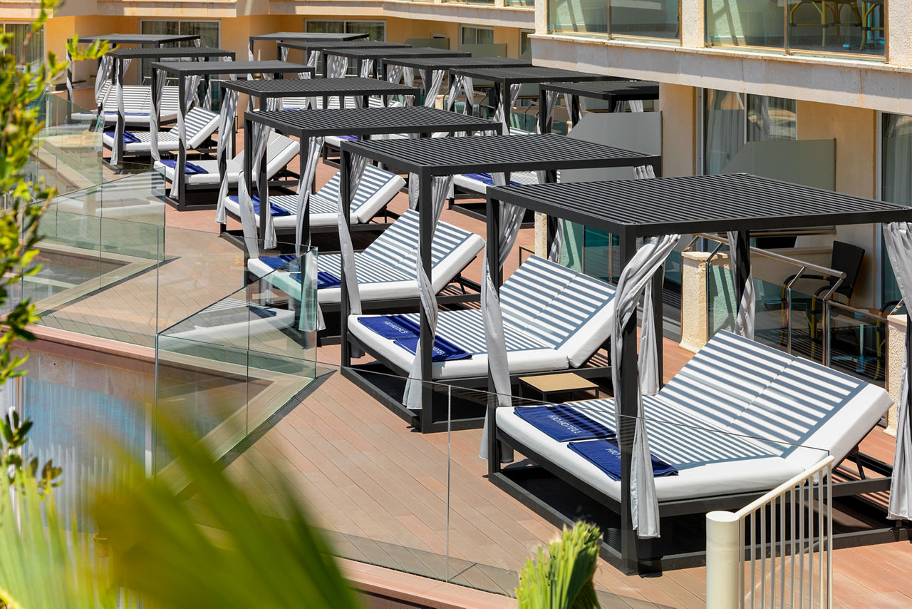 Located on the beachfront within the peaceful resort Camp de Mar, this Adults Only property has a host of calming colours and relaxing facilities. There's a spa with beauty treatments, an outdoor pool with large terrace and even a bar with live music. For the perfect evening you can indulge in a meal at the restaurant then head up to the chill-out terrace on the 5th floor to enjoy stunning views of the sunset. All this and more awaits at H10 Blue Mar.