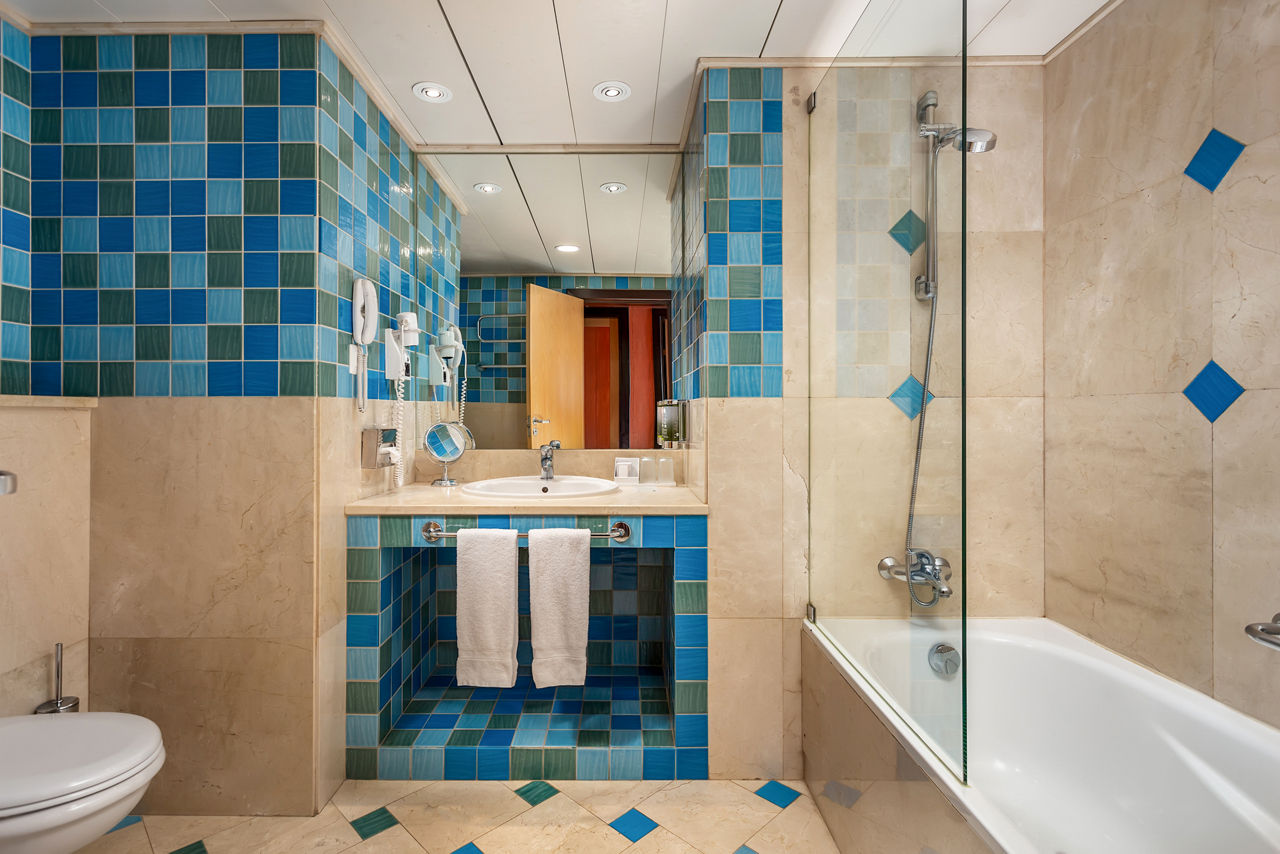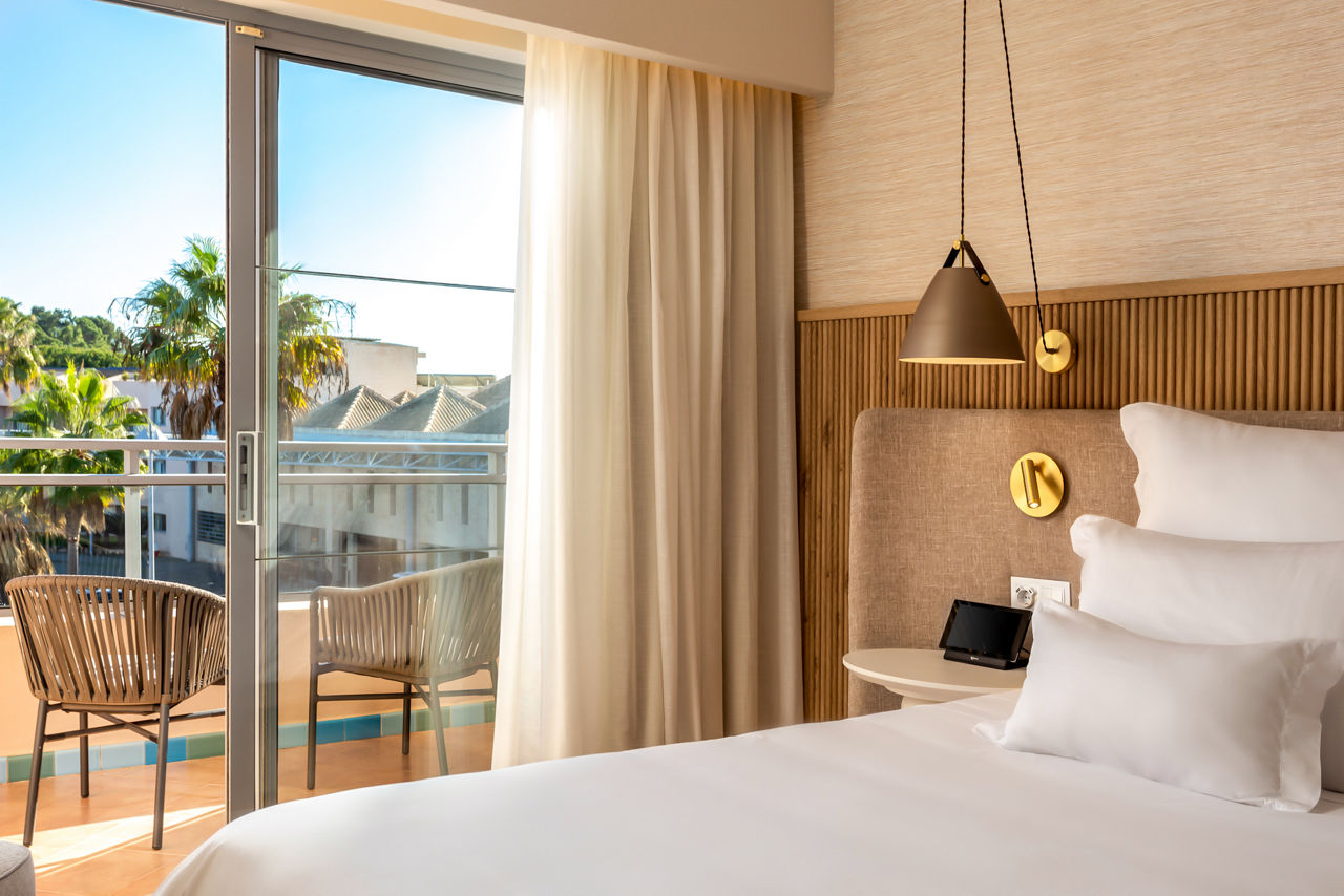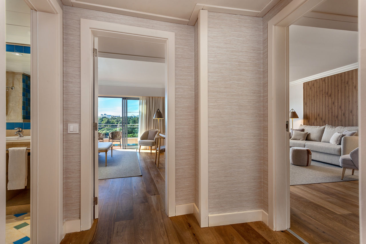 The Grande Real Santa Eulalia ResortClassic rooms with Resort View sleep 2 adults and have bathroom containing a bath with shower attachment, air conditioning, hairdryer, bathrobe and slippers, flat screen television and balcony. Classic rooms with Sea View sleeping up to 2 adults and 1 child, Suites with Resort View sleeping up to 3 adults and 1 child, Suites with Sea View sleeping up to 3 adults and 1 child, Grande Real suites sleeping up to 5 adults and 1 child (available on request), Studio apartments with Resort View sleeping up to 2 adults and 1 child, One Bedroom Resort apartments sleeping up to 3 adults and 1 child (located in the hotel grounds, next to the main hotel building), Two Bedroom Resort apartments sleeping up to 5 adults and 1 child (located in the hotel grounds, next to the main hotel building) and Classic rooms with Sea View for Sole Use are also available.