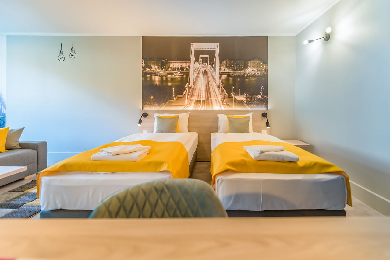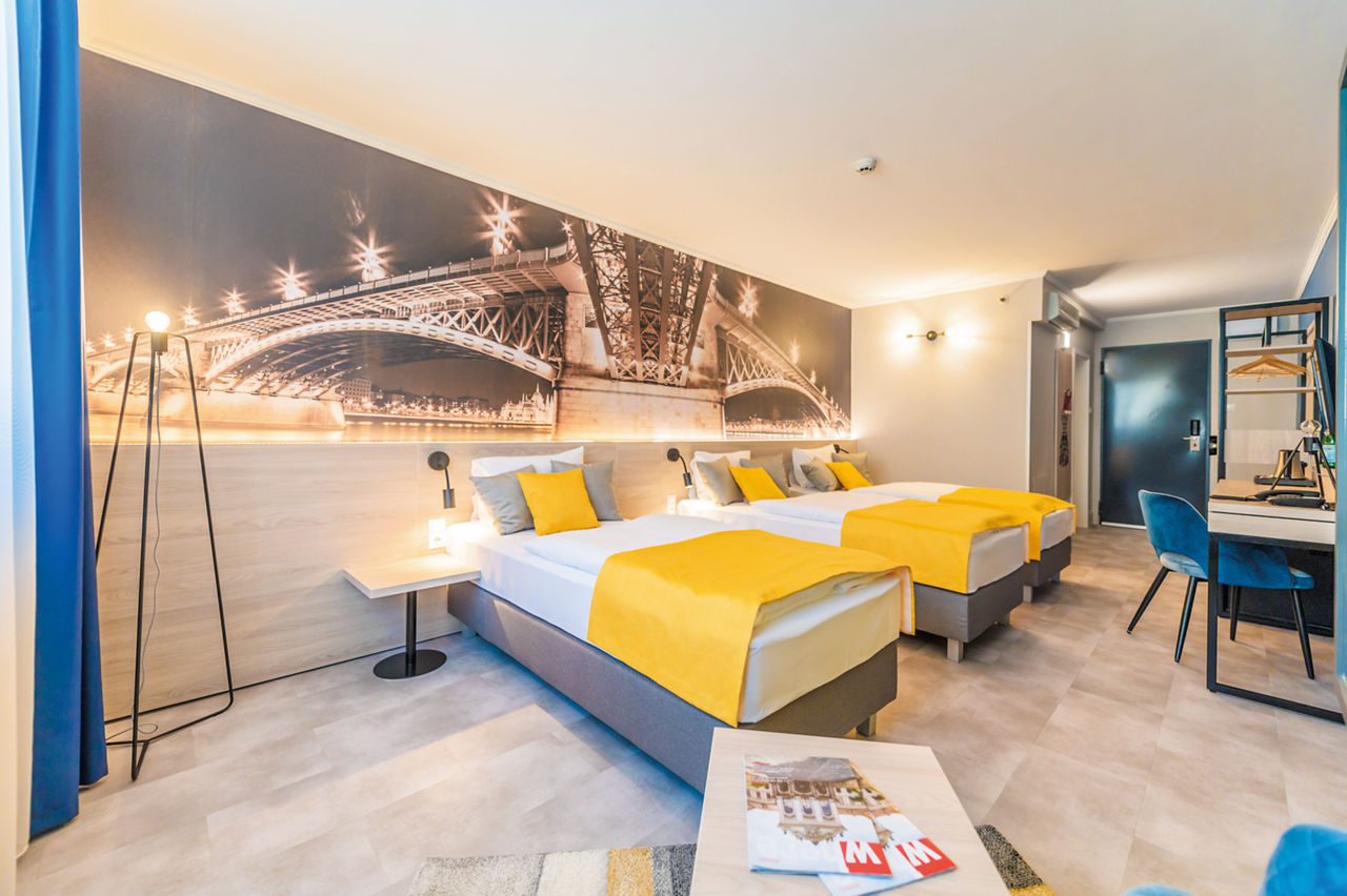Close to the Erkel Theatre, in an area with good transport links, this hotel is a great base to explore the city. Showcasing a range of rooms with a bright and airy design, the hotel offers a spacious bar and breakfast area. Head out, using the local transport to make the most of your time discovering this historic city and at the end of the day check out the various bars and restaurants nearby to sample some typical Hungarian cuisine. Rooms are comfortable and can accommodate up to four people making this simple hotel great value for money.Double or Twin rooms sleep up to 2 adults and have bathroom containing a shower, air conditioning, hairdryer, flat screen television and free Wi-Fi. Rooms upgrade options and rooms sleeping up to 4 are also available.