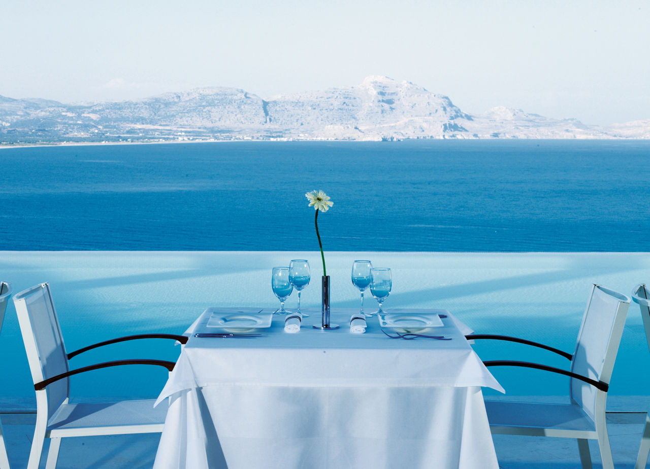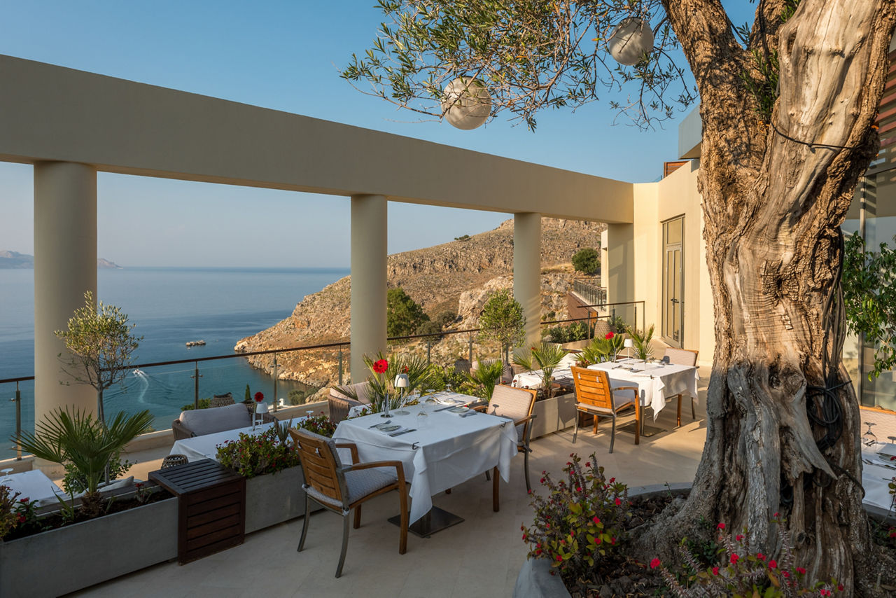 50m from the beach (accessed by a lift or steps). 2km from Lindos resort centre.Eating And Drinking