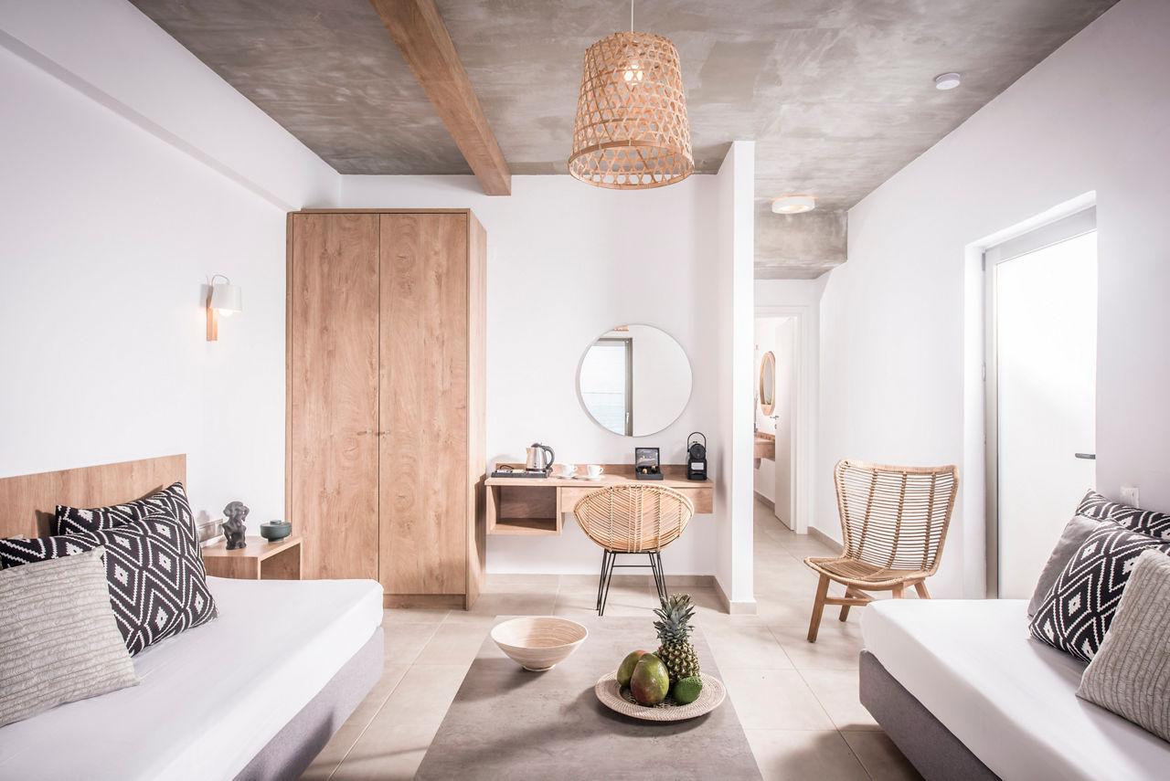 Overlooking the pretty cove of Gouves, the Enorme Maya Beach Hotel comes with an adults-only tag. The rooms and hotel throughout, are decorated in a minimalist and boho style. Dining options include a wonderful restaurant offering street food based menus to a la carte dining in the beachfront restaurant. Simply press a button, and the waiters will bring you sushi, bao buns, supper bowls and delicious snacks during the day. As the sun goes down, grab a cocktail and relax in one of the hanging swings. There are yoga and stretching sessions available alongside outdoor massage treatments.The perfect way to enjoy Crete!