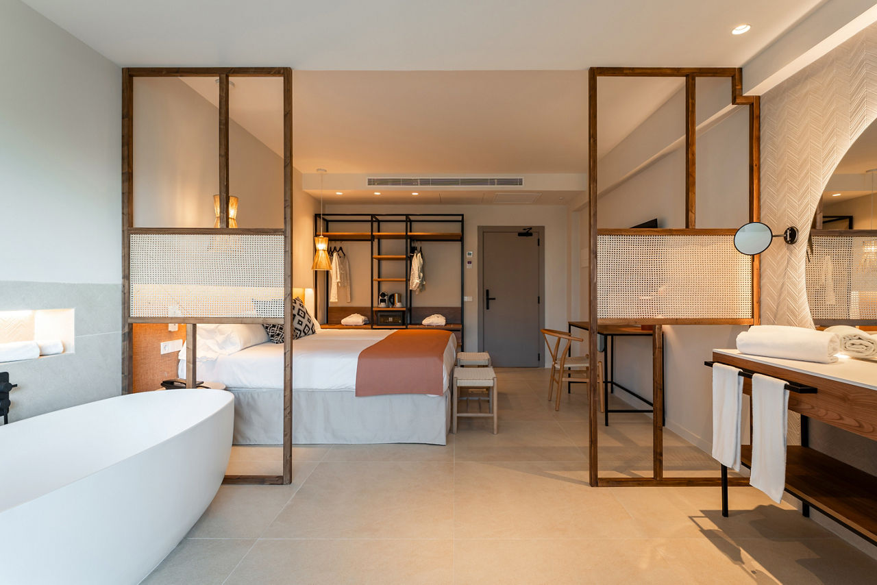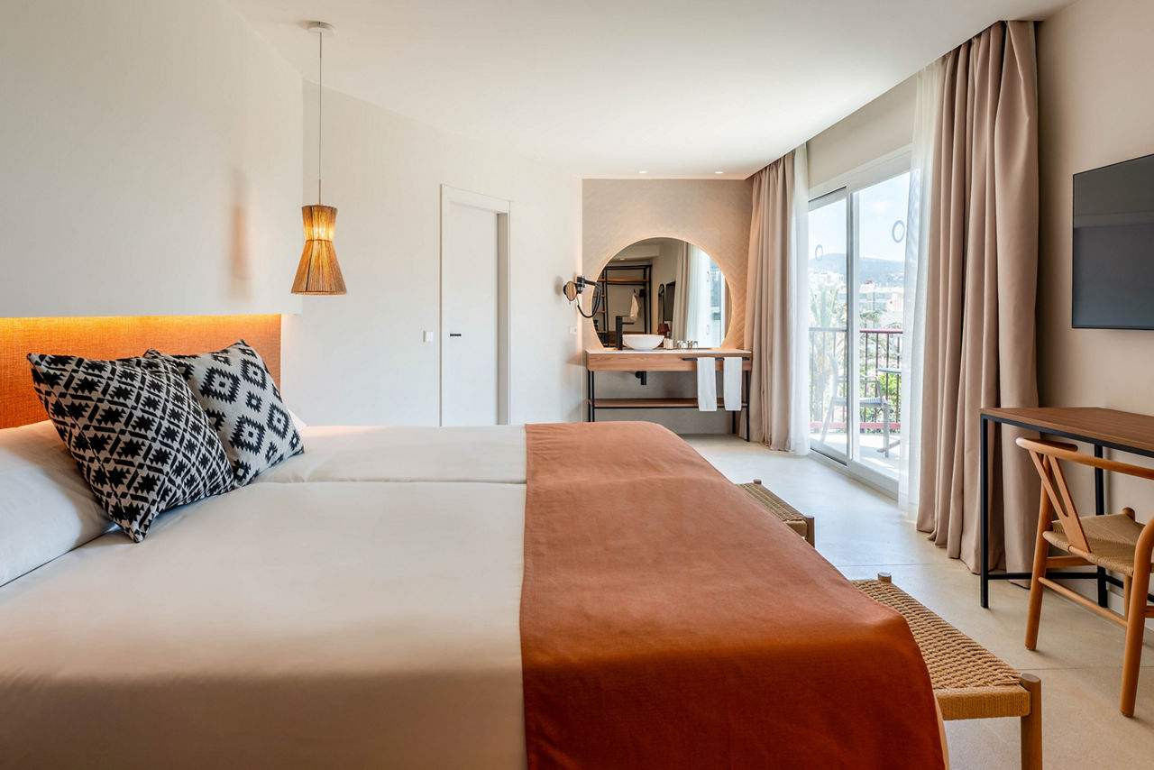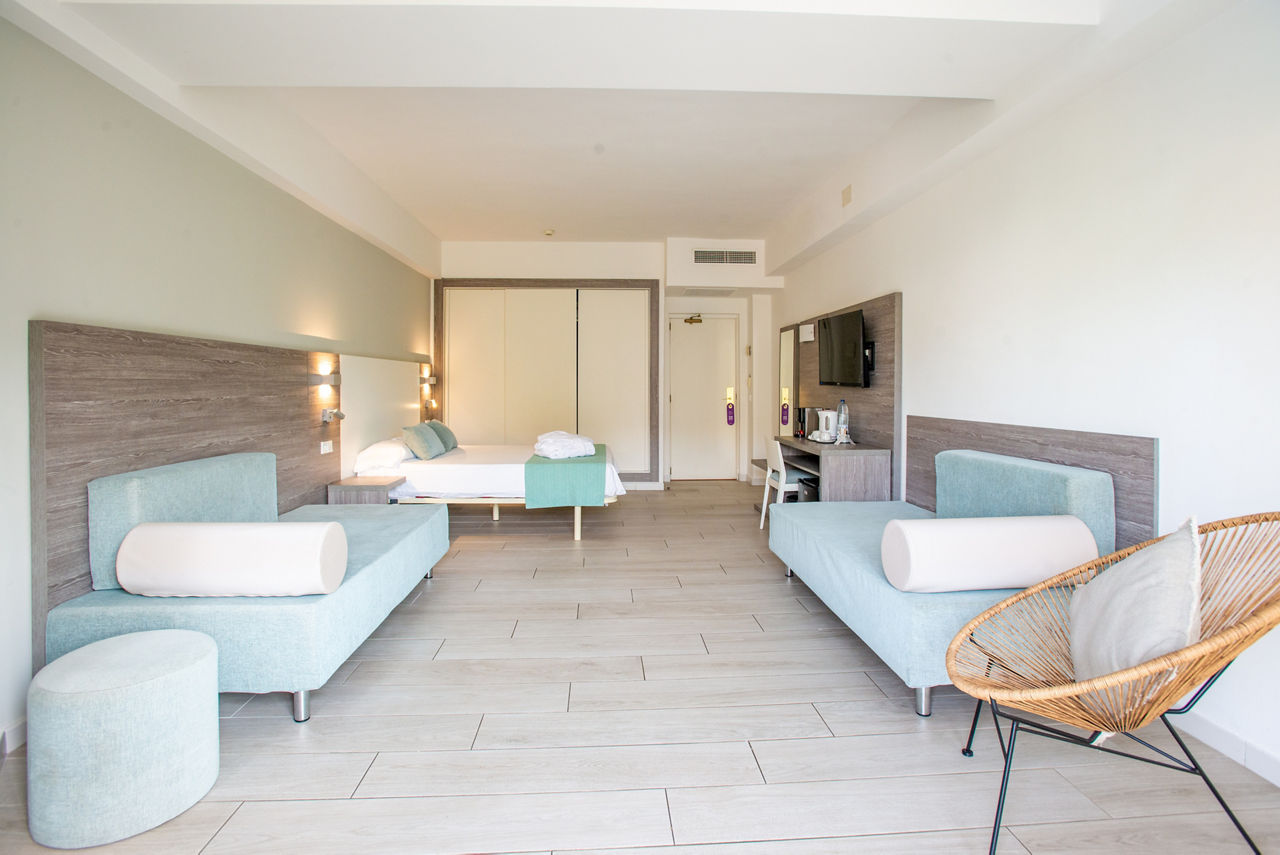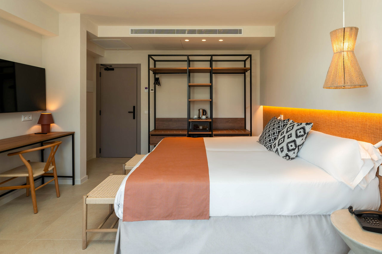 With palm-filled grounds and a modern feel, the FERGUS Bermudas is a lovely choice. One of its best bits? The fantastic location, just a short stroll from the beach. Stick to the hotel and you?ll have a large swimming pool area to enjoy, plus there?s a children?s club for the little ones. Go for the All Inclusive option and you can enjoy great value for money from the buffet restaurant and two bars. The lively heart of Palma Nova is just 200m away, so you?ve got oodles of bars and restaurants right on your doorstep!Twin rooms sleep up to 3 adults and have bathroom containing a bath or shower, air conditioning (01 May-31 Oct), hairdryer, flat screen television, safety deposit box* and balcony. Twin rooms with Pool View, Junior suites and Sole Use rooms are also available.