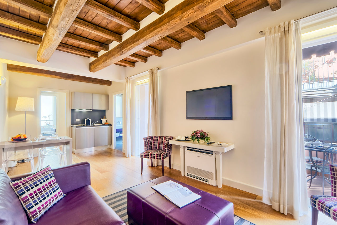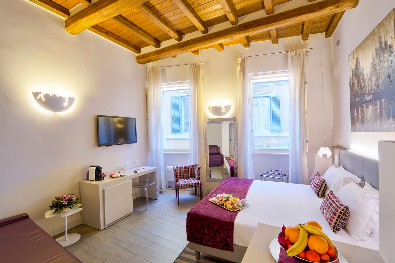 You could not be more central when staying at the Trevi Palace Luxury Inn. Set in a modernised 16th-century building, it is an ideal base for exploring the city. The rooms are minimalist in style, with bright white décor, touches of colour, and tea and coffee-making facilities. There is a small breakfast room in the basement, and with the vibrant historic centre right outside your door, you will find plenty of local restaurants for dinner.Classic Double and Twin rooms sleep up to 2 adults and have bathroom containing a shower, air conditioning, slippers, hairdryer, flat screen television, tea and coffee making facilities and safety deposit box. Room upgrade options and Sole Use rooms are also available.