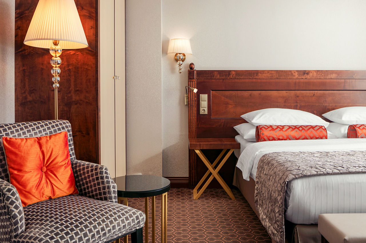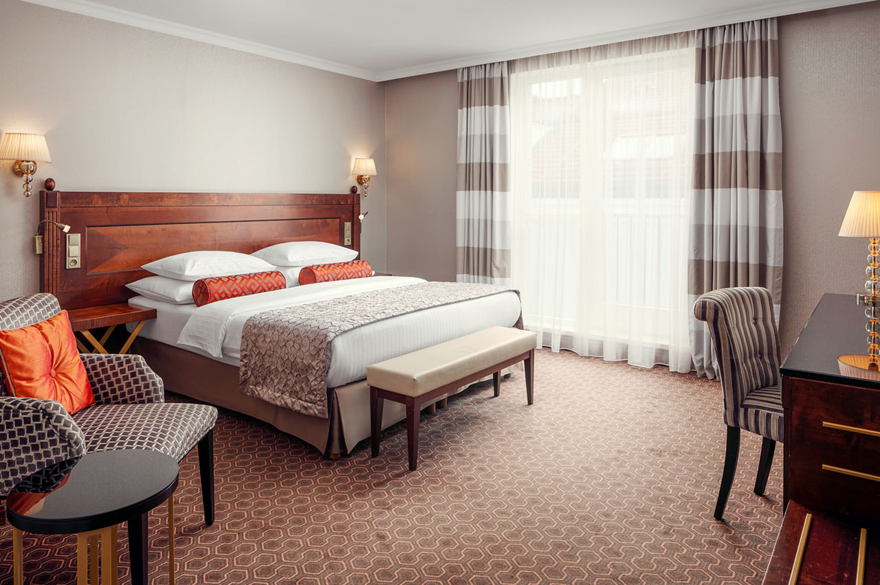 This stylish hotel boasts the perfect blend of traditional, time-worn features and modern design touches. The Next Door restaurant is run by celebrity chef Zdenek Pohlreich and offers an extra-special dining experience. It also features the building?s original ceiling frescoes which date all the way back to 1889! Fancy a quick workout? Make a beeline for the sleek fitness suite, before unwinding in the sauna. When it comes to exploring Prague, you couldn?t be better placed. Public transport stops are right around the corner and the enchanting Old Town and Wenceslas Square are both nearby.Deluxe rooms sleep up to 2 adults and have bathroom containing a bath with shower attachment, air conditioning, hairdryer, bathrobe and slippers, flat screen television, tea and coffee making facilities, mini-bar and safety deposit box. Room upgrade options are also available.