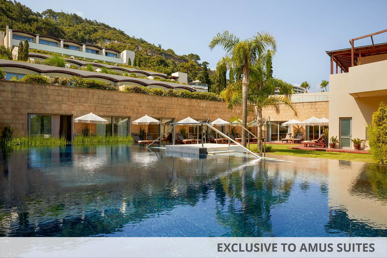 Escape to a stunning seaside retreat in Rhodes, Amus Hotel & Spa offers stunning views, a collection of pools, and excellent facilities for everyone including a serene spa, modern gym, and fun-filled children?s club. Located in Ixia resort centre, it?s perfect for exploring while enjoying stylish dining and rooms. For an elevated experience, why not book a private pool suite and wake up to breath taking views of Aegean Sea? From sunset beach walks to candlelit dinners, every moment here is designed for a truly unforgettable stay.