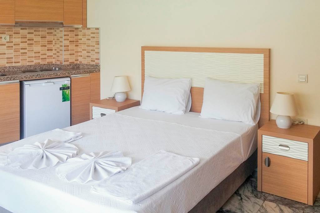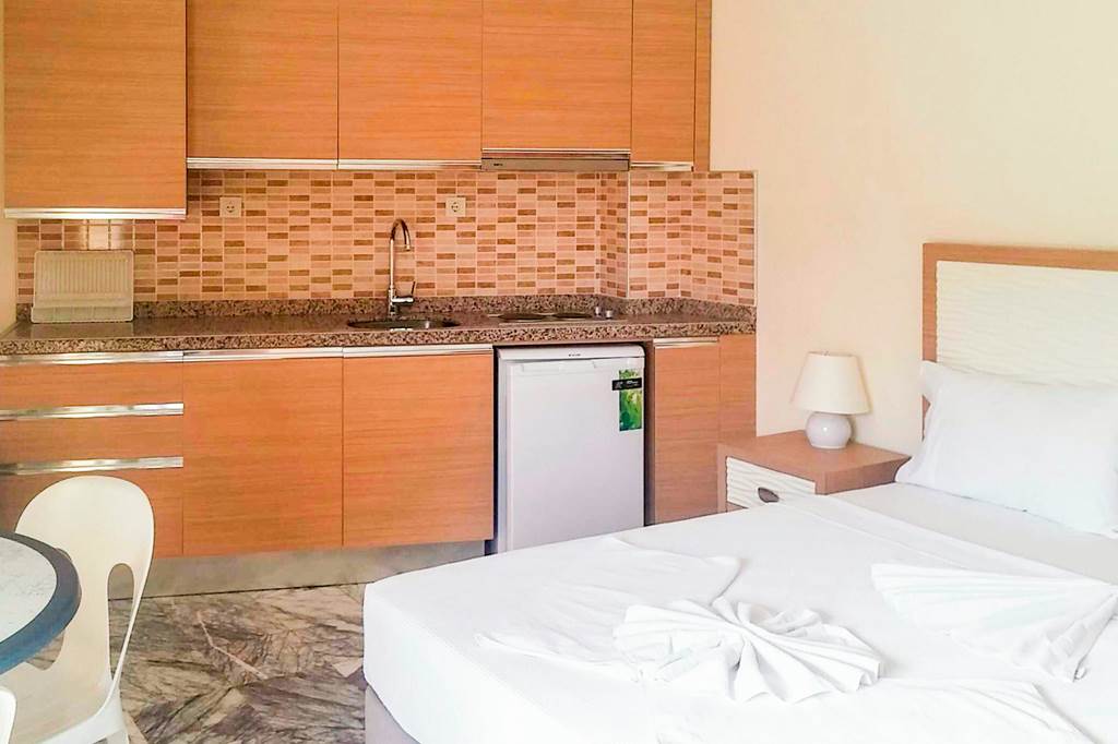 The simple and spacious Marianna Studios provide a comfortable self catering option on the sun-drenched island of Kos. Guests will be able to combine lazy days around the swimming pool with evenings in the restful resort of Tingaki. This accommodation is ideal for those seeking a peaceful holiday yet close enough to the resort centre to sample the simple Greek way of life!Studio sleeping up to 3 adults and have a bathroom containing a shower, air conditioning*, flat screen television, kitchenette with double cooking rings, fridge, kettle, microwave and a balcony or terrace. One Bedroom apartments sleeping up to 3 are also available.