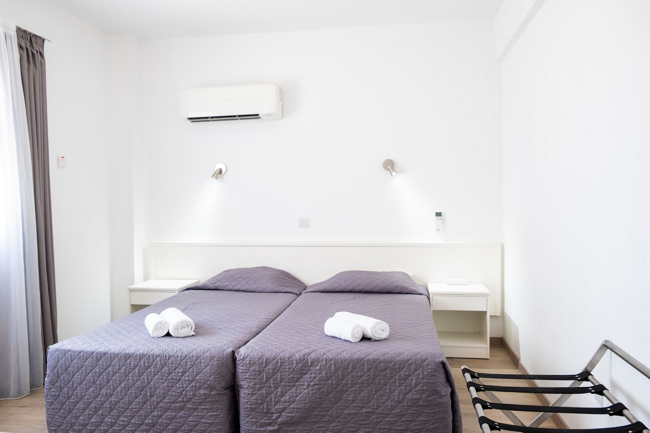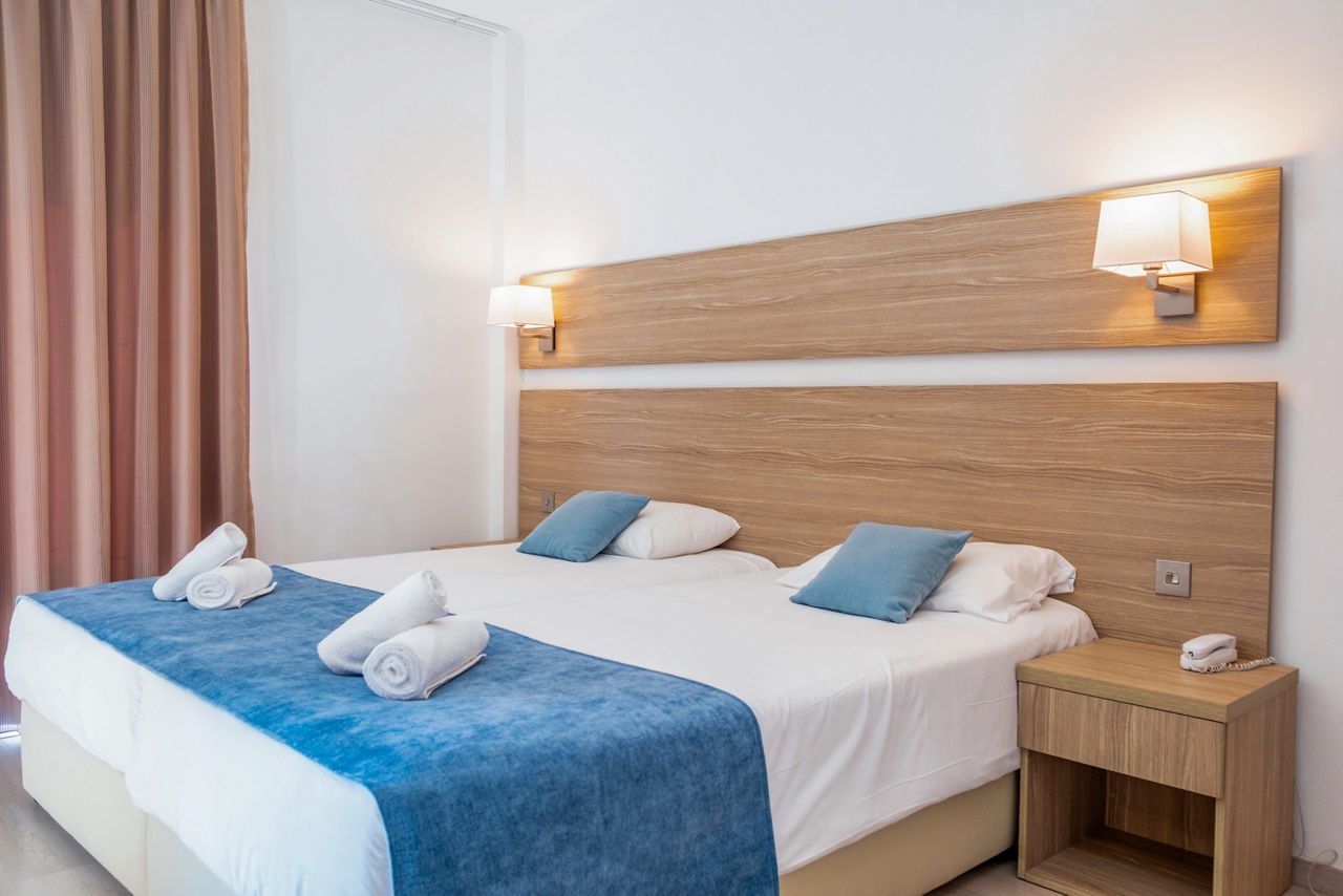 This great value for money hotel enjoys a wonderful location at the northern tip of the Protaras strip, meaning the beach and the resort amenities such as shops, restaurants and the nightlife are a short walk away. The outdoor pool features a large sun terrace, perfect for soaking up the Cypriot sunshine and the pool snack bar is ideal for cooling off with a chilled drink. The Kapetanios Bay Hotel Protaras offers a comfortable stay, ideal for exploring the local area.Standard rooms with Side Sea View sleep up to 3 adults and have bathroom containing a bath with shower attachment, air conditioning (01 May-16 Oct) hairdryer, television and balcony. Superior rooms with Side Sea View, Family rooms sleeping up to 4 adults and Sole Use rooms are also available.