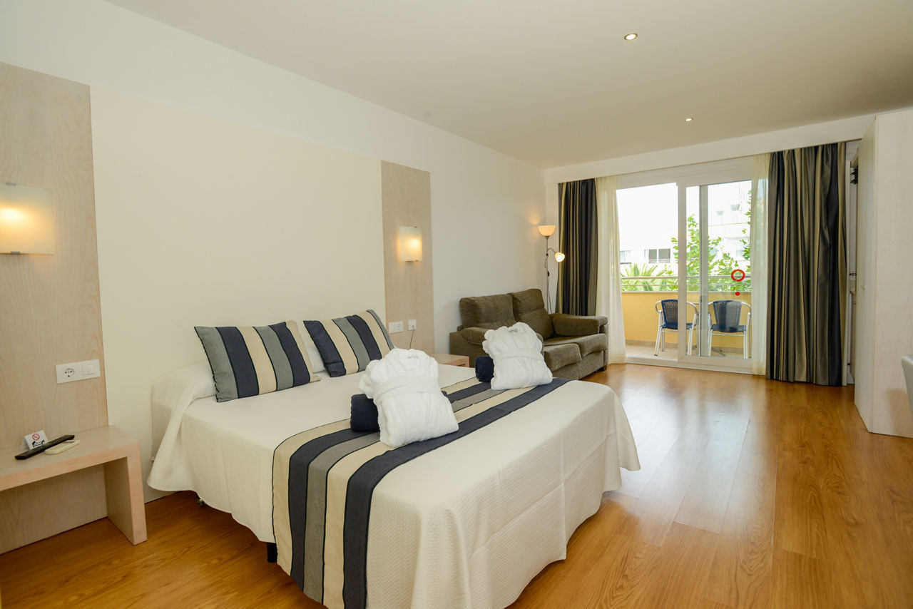 Located in the pretty resort of Cala Blanca and close to a gorgeous beach glistening with turquoise waters, the popular Hotel Sagitario Playa will appeal to couples and families alike. The historical city of Ciutadella, which is sure to inspire with its cobbled streets and rich history, is also in within easy reach. If you don't fancy venturing too far, the hotel's pool is perfect for some serious chill-out time and evening entertainment will provide nights filled with laughter. With good value and plenty of facilities to keep all ages entertained, Hotel Sagitario Playa is definitely a winning choice.Double or Twin rooms sleep up to 3 adults and have bathroom containing a bath, air conditioning, hairdryer, flat screen television, coffee making facilities, fridge, kettle and a balcony or terrace. Double rooms for Sole use are also available.
