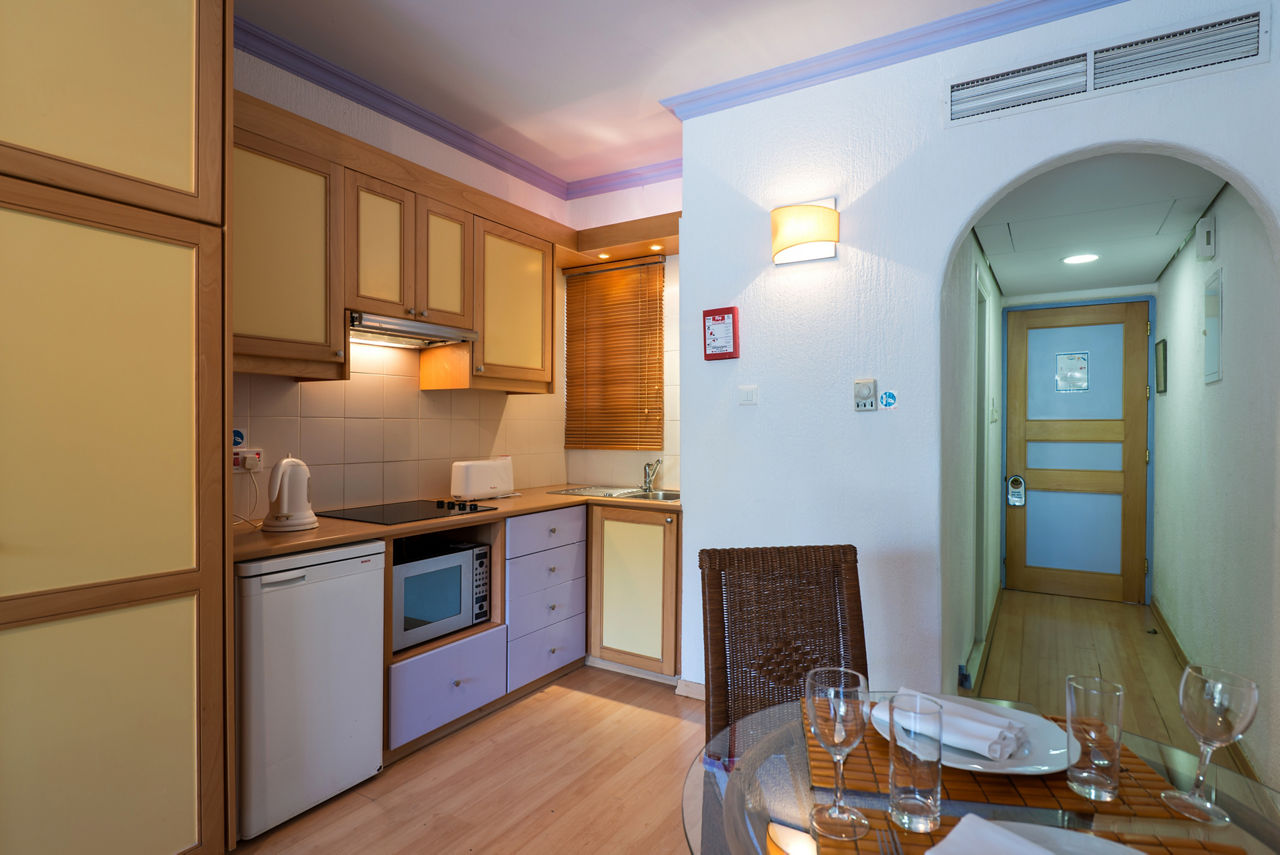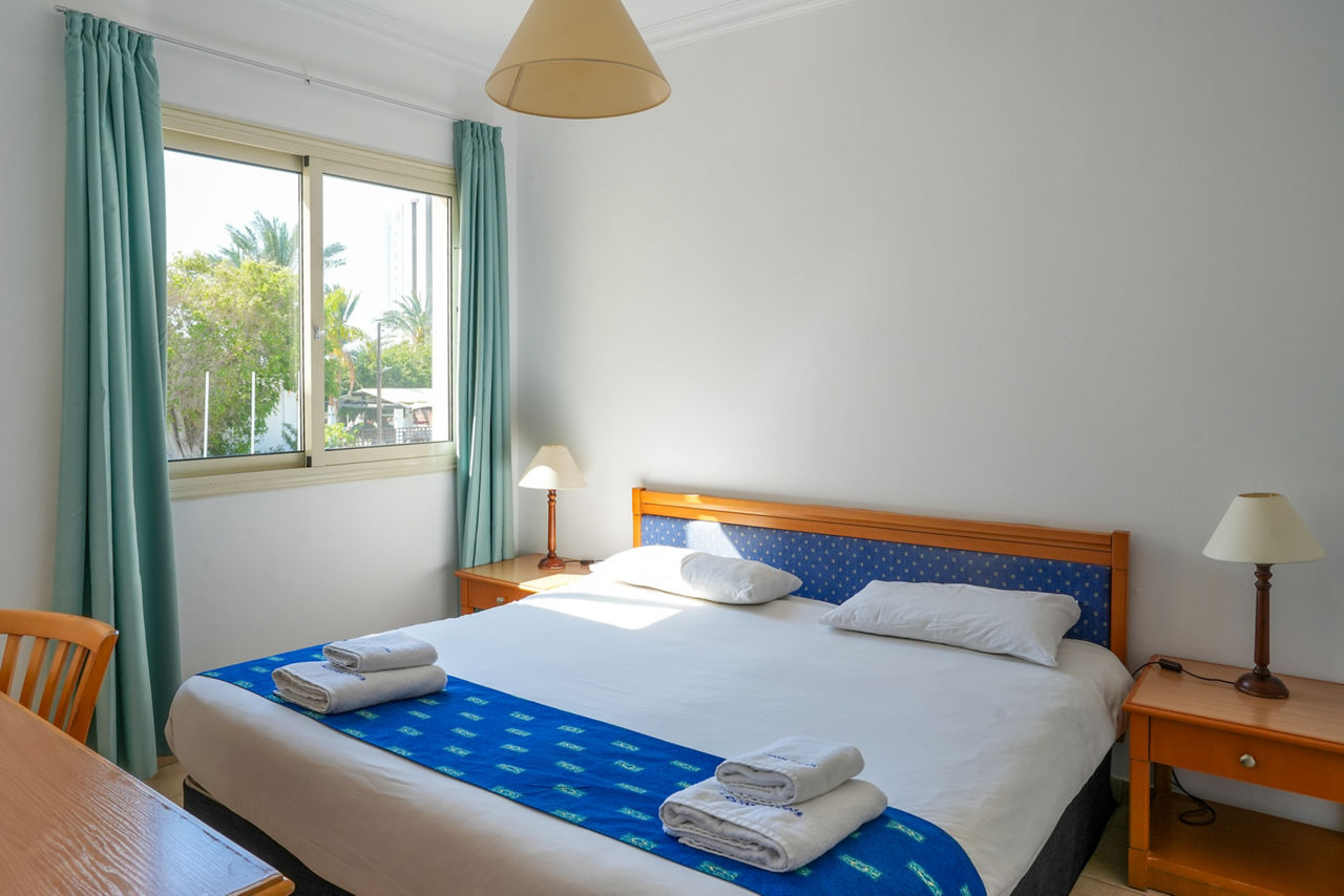 Surrounded by leafy gardens and just a short walk from the beach, Paphos Gardens HotelTwin rooms sleep up to 3 adults and have bathroom containing a bath with shower attachment, air conditioning (Jun-Oct), hairdryer, television and balcony. Sole Use rooms are also available. Superior studios sleep up to 3 adults and have bathroom containing a shower, air conditioning (Jun-Oct) hairdryer, television, fridge, oven, double cooking rings, toaster, tea and coffee making facilities and balcony or terrace. Superior One Bedroom apartments sleeping 4 adults and Superior Two Bedroom apartments sleeping up to 6 are also available.