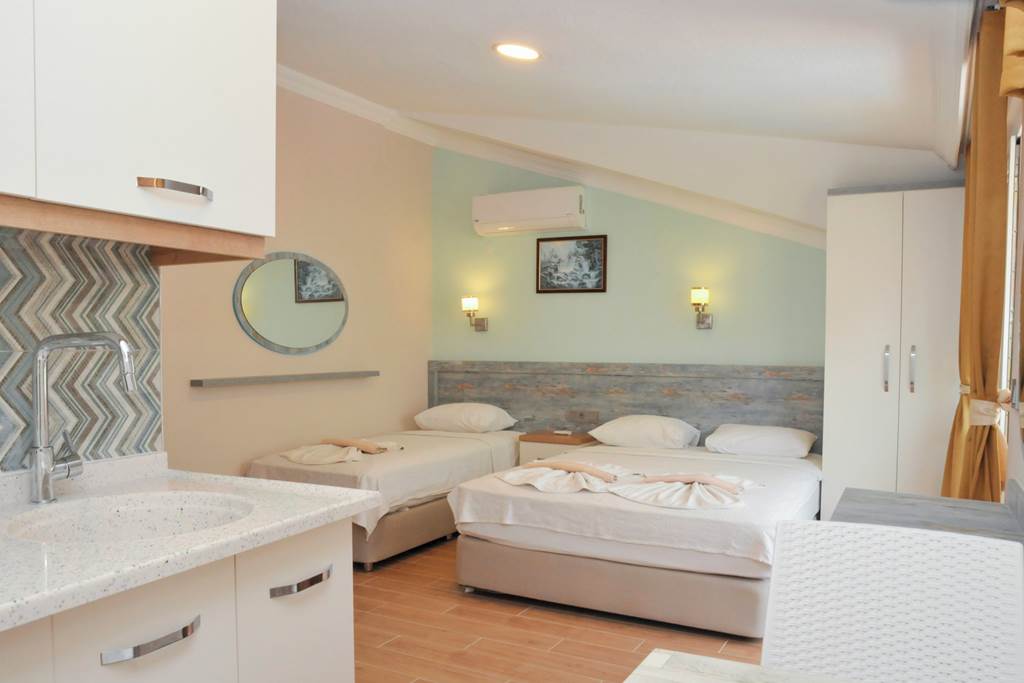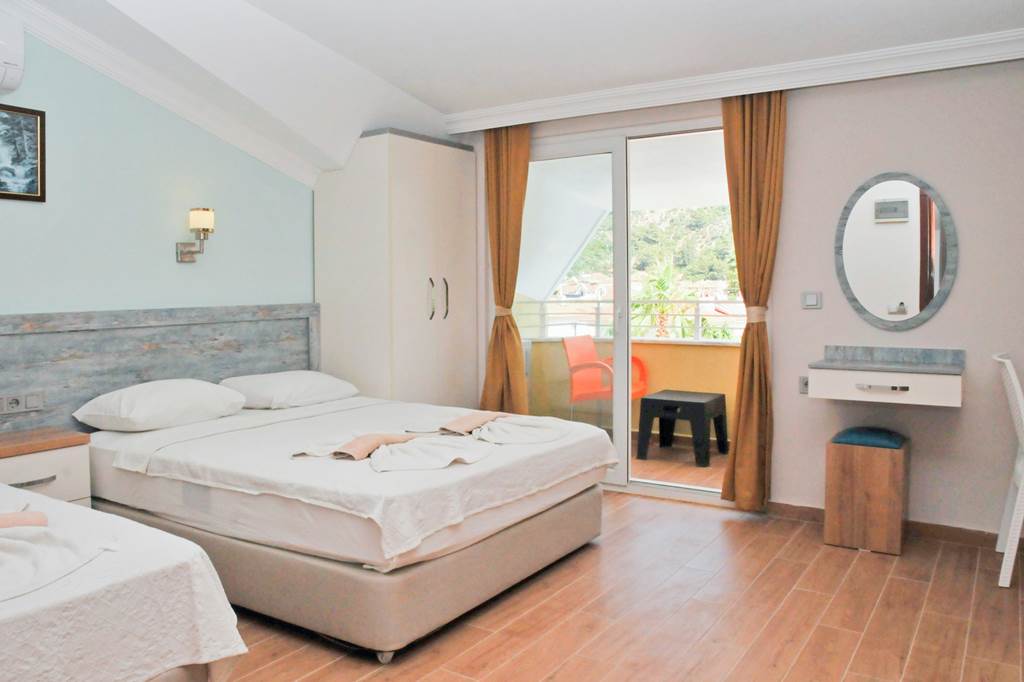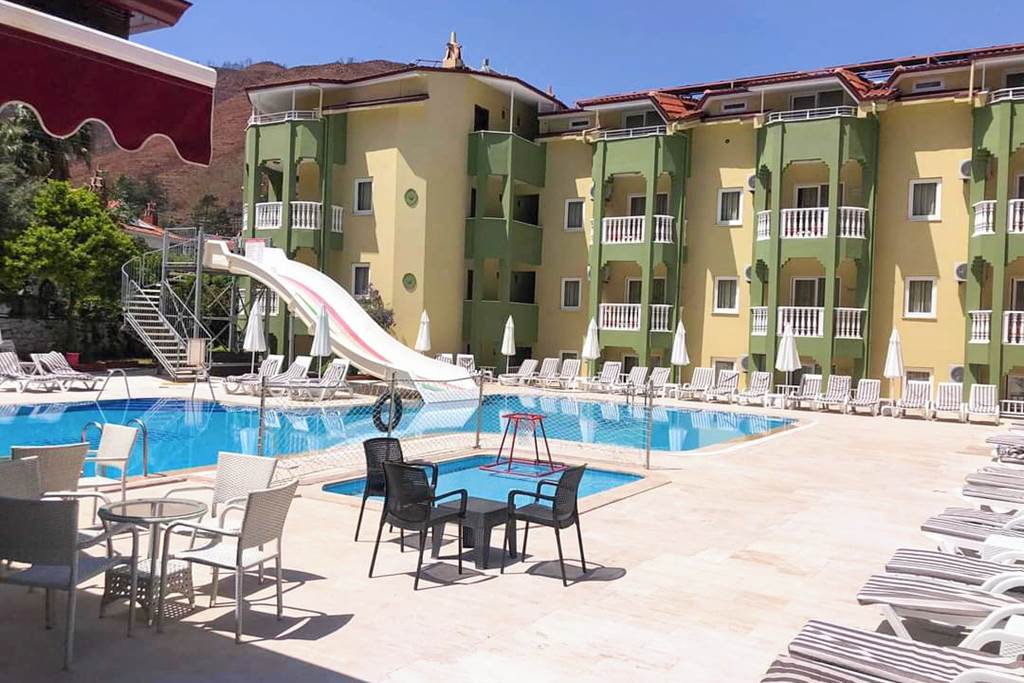 Located in a peaceful setting in scenic Icmeler, Efem Apartments is a simple property with a friendly atmosphere. The pool area comes complete with a slide and separate children?s pool, with sun loungers available for relaxing in the sun. There?s a pool bar too, serving drinks and snacks throughout the day. The property is ideal for a self-catering getaway for families, couples and friends.One bedroom apartments sleep up to 4 adults and have bathroom containing a shower, air conditioning*, hairdryer, double cooking rings, fridge, kettle, toaster and balcony or terrace.